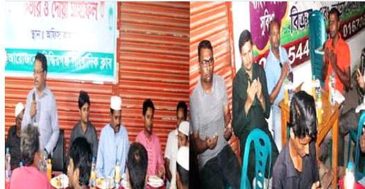 সিদ্ধিরগঞ্জ প্রতিনিধি: সিদ্ধিরগঞ্জ সাংবাদিক ক্লাবের উদ্যোগে ইফতার ও দোয়া মাহফিল আয়োজন করা হয়েছে। ক্লাবের নবগঠিত কমিটির সকলের সম্মেলিত প্রচেষ্টায় অনুষ্ঠানটি সফলভাবে সম্পন্ন করা হয়েছে।