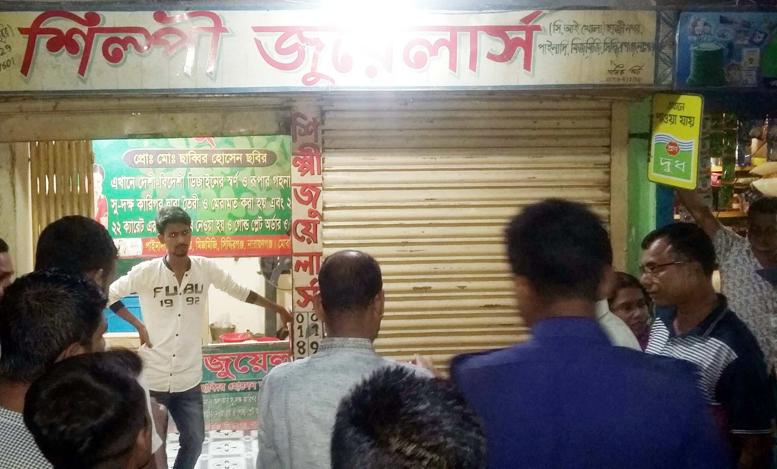 সিদ্ধিরগঞ্জ প্রতিনিধি : সিদ্ধিরগঞ্জের মিজমিজি পৃর্ব পাইনাদী সিআই খোলা এলাকায় একটি স্বর্ণের দোকানে রহস্যজনক চুরির ঘটনা ঘটেছে। গতকাল শুক্রবার দুপুরে শিল্পী জুয়েলার্স নামক দোকানে চুরির ঘটনা ঘটে। জুয়েলার্সের মালিক ছাব্বির হোসেন ছবির থানা পুলিশকে খবর দিলে ঘটনাস্থলে সিদ্ধিরগঞ্জ থানার এসআই ইব্রাহীম পাটোয়ারী আসেন। তবে চুরির ঘটনাটি ব্যাপক সন্দেহজনক বলে জানান থানা পুলিশ। মালিকপক্ষ দাবি করেন জুয়েলার্স দোকান থেকে ৩০ ভরি স্বর্ণ চুরি হয়েছে। তালা ভাংচুর ছাড়াই কিভাবে দোকানের চুরি হলো তা নিয়ে এলাকায় চলছে নানা ধরনের গুঞ্জন। খবর পেয়ে সিদ্ধিরগঞ্জ থানা অফিসার ইনচার্জ কামরুল ফারুক ও ওসি তদন্ত আজিজুর ইসলাম ঘটনাস্থল পরিদর্শন করেছেন। সিদ্ধিরগঞ্জ থানার অফিসার ইনচার্জ কামরুল ফারুক বলেন, চুরির ঘটনাটি সন্দেহ জনক। শিল্পী জুয়েলার্সের দোকানের বাহিরে থেকে তালা লাগানো ছিলো তাহলে কিভাবে দোকানে চুরি হলো?। তিনি আরও বলেন, চলতি মাসের ৪ তারিখ থেকে ১১ তারিখ পর্যন্ত এই জুয়েলার্সে মাত্র আধা ভরি স্বর্ণ বিক্রি হয়েছে। পুলিশ মালিক পক্ষের কাছে ৩০ ভরি স্বর্ণের ক্রয়কৃত কাগজ পত্র চাইলে তা দেখাতে পারেনি মালিক ছাব্বির হোসেন ছবির। উক্ত বিষয়ে তদন্ত করে ব্যবস্থা গ্রহন করা হবে এবং জিজ্ঞাসাবাদের জন্য মালিক ও তার ছেলেকে থানায় নেওয়া হয়েছে।