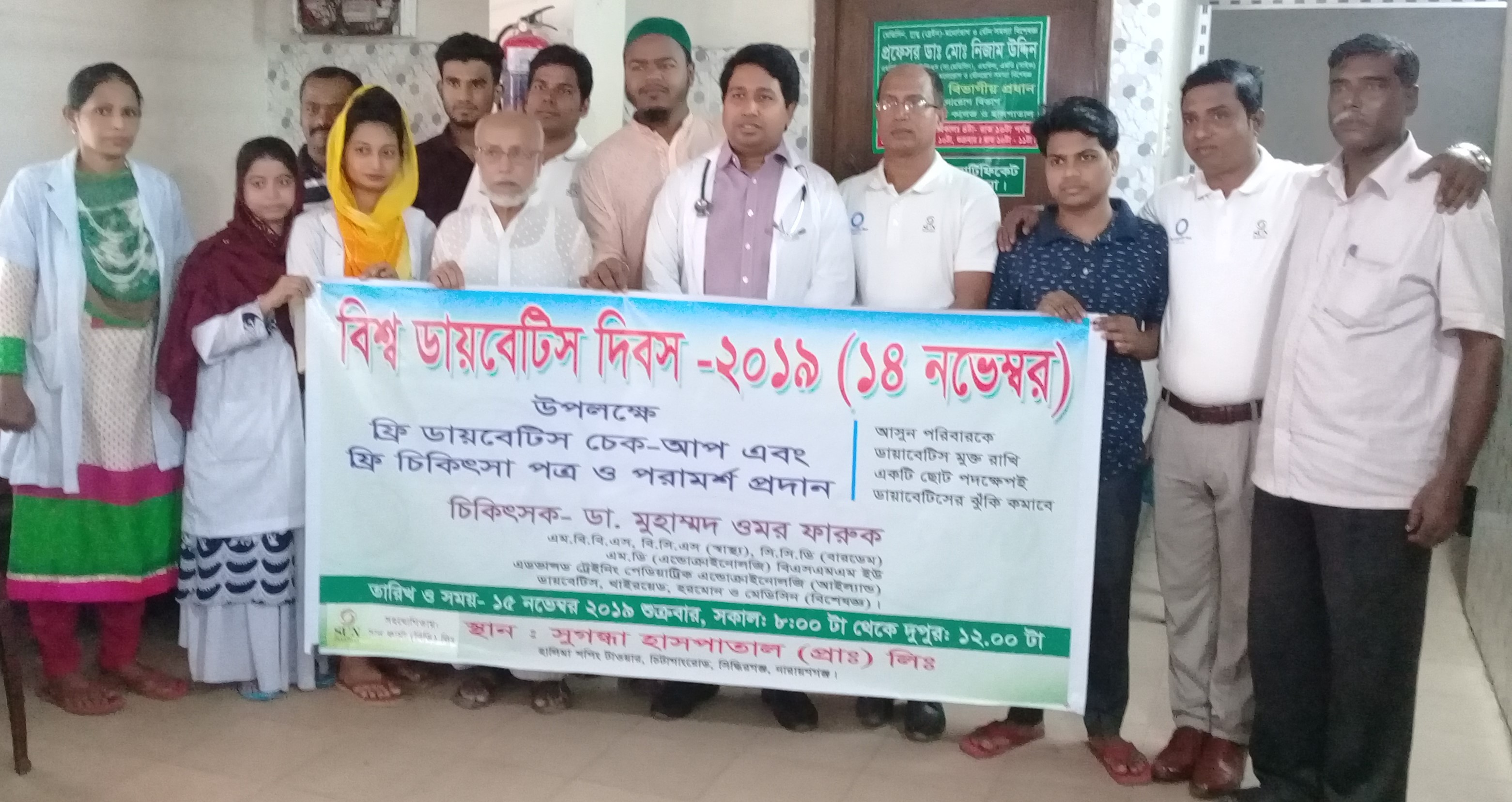 সিদ্ধিরগঞ্জ প্রতিনিধি : বিশ্ব ডায়াবেটিস দিবস উপলক্ষে সিদ্ধিরগঞ্জ থানাধীন চিটাগাংরোড হালিমা শপিং টাওয়ারে অবস্থিত সুগন্ধা হাসপাতালের উদ্যোগে ফ্রি স্বাস্থ্যসেবা প্রদান করা হয়েছে। শুক্রবার সকালে সুগন্ধা হাসপাতালে কক্ষে এই চিকিৎসা সেবা দেওয়া হয়। ফ্রি চিকিৎসা সেবা অনুষ্ঠানে প্রধান অতিথি হিসেবে উপস্থিত ছিলেন ডায়াবেটিস,থাইরয়েড এবং অন্যান্য হরমোন ও মেডিসিন বিশেষজ্ঞ ডাক্তার মুহাম্মদ ওমর ফারুক। এসময় উপস্থিত ছিলেন, সুগন্ধা হাসপাতালের ব্যবস্থাপনা পরিচালক আয়ুব আলী, হাজী মো: কবির হোসেন, মো: আফির উদ্দিন এবং হাজী মো: মোস্তাফিজুর রহমান। প্রধান অতিথির বক্তব্যে ডাক্তার ফারুক জনসচেতনতার উদ্দেশ্যে বলেন, ডায়াবেটিস একটি নিয়ন্ত্রন যোগ্য ব্যাধি। নিয়মানুবর্তিতা এবং সচেতনতা এ রোগ হওয়া থেকেও আটকাতে পারে। স্বাস্থ্যসম্মত খাদ্যগ্রহন, নিয়মিত শারিরীক চর্চা, কিছুদিন অন্তর অন্তর স্বাস্থ্য পরীক্ষার উপর জোড় দিয়ে তিনি বলেন, সুস্থ্য থাকার জন্য স্বদিচ্ছাই যথেষ্ট। ডাক্তার ওমর ফারুক আরও বলেন, শুধুমাত্র ডায়াবেটিস দিবসে নয়, নিয়ম করে কিছুদিন পর পর এ ধরনের সচেতনতামূলক সভা করা উচিৎ। সুস্থ থাকার জন্য সুস্থ অভ্যান গড়ে তুলতে হবে। যেমন ধূমপান পরিহার করা, নিয়মিত হাঁটা, ব্যায়াম, প্রচুর শাক সবজি, মৌসুমী ফল গ্রহন, প্রচুর পানি পান করা ইত্যাদি। উক্ত স্বাস্থ্যসেবায় অনুষ্ঠানে বিভিন্ন ঔষুধ কোম্পানির মার্কেটিং অফিসার এবং হাসপাতালের নার্সরা উপস্থিত ছিলেন। শেষে রোগী ডায়াবেটিস চেক-আপ এবং ফ্রি চিকিৎসা পত্র ও পরামর্শ প্রদান করেন বারডেম ও পিজি হাসপাতালের বিশেষজ্ঞ ডাক্তার ওমর ফারুক।