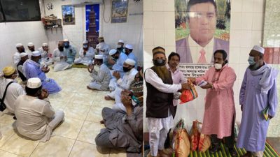 স্টাফ রিপোর্টার : বর্তমান বিশ্বজুড়ে সব চাইতে আলোচিত নাম করোনা ভাইরাস। প্রথম দিকে শুধুমাত্র ভাইরাস হিসেবে থাকলেও বর্তমানে তা মহামারি আকার ধারন করেছে। প্রাদুর্ভাব ঠেঁকাতে বাংলাদেশ সহ পুরো পৃথিবীতে চলছে সামাজিক দূরত্ব। এককথায় লকডাউন। উচ্চবিত্তদের কাছে এর নাম লকডাউন হলেও নিম্নবিত্তদের কাছে এটি একটি অভিশাপের নাম। আয়ের উৎস বন্ধ হয়ে যাওয়ায় কখনো খালি পেটে আবার কখনো আধপেটে থাকতে হয় তাদের। তাই তাদের কাছে এখন জীবনের চাইতে জীবিকার চাহিদা বেশী। তবে অনেক বিত্তবানরাই এগিয়ে আসছেন এদের সাহায্যে। তেমনি বাংলাদেশ ওলামালীগের সাবেক প্রতিষ্ঠাতা সভাপতি আলহাজ¦ হাবিবুল্লাহ কাঁচপুরী তিন শতাধিক অসহায় মানুষের পাশে থেকে রাতের আধারে খাদ্য সামগ্রী বাড়ী বাড়ী গিয়ে পৌছে দিচ্ছেন। প্রতিদিন রাতে নিজের ব্যাক্তিগত গাড়ী করে এ খাদ্য সামগ্রী দিয়ে যাচ্ছেন নারায়ণগঞ্জ, ডেমরাসহ বিভিন্ন এলাকার অসহায় মানুষের কাছে। বাদ যায়নি নিজ গ্রাম চৌদ্দগ্রামের মানুষও। খাদ্য সামগ্রীর পাশাপাশি নগদ অর্থ দিয়েও সহযোগীতার করছেন কাঁচপুরী। বাংলাদেশ ওলামালীগের সাবেক প্রতিষ্ঠাতা সভাপতি আলহাজ¦ হাবিবুল্লাহ কাঁচপুরী বলেন, বৈশ্বিক মহামারি করোনা ভাইরাসের কারনে সরকারী-বেসরকারী অফিস আদালত সাধারন ছুটি সহ বাংলাদেশের বিভিন্ন জেলা লকডাউন চলছে। লকডাউন থাকার কারনে নিম্ন আয়ের মানুষ গুলো বেশী সমস্যায় পড়েছে। আমার সামর্থ্য অনুযায়ী কিছু খাদ্য সামগ্রী উপহার হিসেবে দিতে পেরে আমি খুব আনন্দিত। জাতির পিতা বঙ্গবন্ধুর সুযোগ্য কন্যা সফল মাননীয় প্রধানমন্ত্রী শেখ হাসিনা মহামারি করোনা ভাইরাস মোকাবেলা করে প্রসংশিত ভূমিকা পালন করছেন। সেই সাথে সরকারী ভাবে ত্রাণ সামগ্রী অসহায় মানুষের বাড়ীতে বাড়ীতে পৌছে দিচ্ছেন। আমি মাননীয় প্রধানমন্ত্রীর সুস্বাস্থ্য ও দীর্ঘায়ু কামনা করছি এবং অসহায় মানুষের পাশে থাকার জন্য সমাজের বিত্তবানদের অনুরোধ করছি। করোনা ভাইরাসে ডাক্তার, পুলিশ, র্যাব, সাংবাদিক সহ যারা আক্রান্ত হয়েছেন তাদের সুস্থতা কামনা করছি। যারা মৃত্যুবরন করেছেন তাদের যেনো মহান আল্লাহ তাআলা জান্নাতদান করেন। সেইসাথে সকলকে নিয়ম মেনে ঘরে থাকার আহবান জানান তিনি