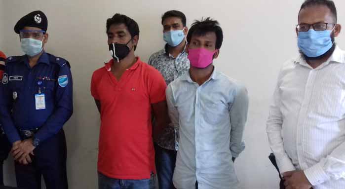 স্টাফ রিপোর্টার : মাদক বিক্রি ও ডাকাতির প্রস্তুতিকালে সাজাপ্রাপ্ত ও একাধিক মামলার পলাতক আসামী দুর্ধর্ষ আন্তঃজেলা ডাকাত দলের সক্রিয় সদস্য ডাকাত সেন্টু (৩৫) ও মামুন (৩০) কে গ্রেপ্তার করেছে সিদ্ধিরগঞ্জ থানার এএসআই হেমায়েত উদ্দিন পিপিএম। গত দিবাগত রাত ১ টার দিকে সিদ্ধিরগঞ্জের শিমরাইলের সাজেদা হাসপাতাল সংলগ্ন ঢাকা - চট্রগ্রাম মহাসড়ক থেকে তাদেরকে গ্রেপ্তার করে। এ সময়ে তাদের পকেট থেকে ২৫০ পিচ ইয়াবা ট্যাবলেট উদ্ধার করা হয়। এ এসআই হেমায়েত উদ্দিন পিপিএম জানায়, গ্রেপ্তারকৃত ডাকাত সেন্টু মাদক মামলার সাজাপ্রাপ্ত পলাতক আসামী তার বিরুদ্ধে একাধিক মামলা রয়েছে। সেন্টুর পিতার নাম মৃত মাওলা বক্স। নারায়ণগঞ্জে কিল্লারপুল এলাকায় তার বাড়ি। অপরদিকে সেন্টুর সহযোগী একাধিক মামলার আসামী ডাকাত মামুনের পিতার নাম আবু সাউদ। তার গ্রামের বাড়ি রুপগঞ্জের বাউলিয়াপাড়ায়। এ ঘটনায় থানার এএসআই হেমায়েত উদ্দিন বাদী হয়ে সেন্টু ও তার সহযোগী মামুনের বিরুদ্ধে সিদ্ধিরগঞ্জ থানায় একটি মামলা দায়ের করেছেন। সিদ্ধিরগঞ্জ থানার ওসি কামরুল ফারুক ঘটনার সত্যতা স্বীকার করে বলেন ধৃত ডাকাত ও মাদক ব্যবসায়ীদের বিরুদ্ধে আইনগত ব্যবস্থা গ্রহন করেছি।