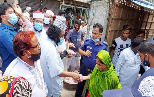 সিদ্ধিরগঞ্জ প্রতিনিধি : সিদ্ধিরগঞ্জ হীরাঝিল আবাসিক এলাকায় প্রিয়ম টাওয়ারে পবিত্র ঈদুল আযহার দ্বিতীয় দিনে গরিব-দুঃখি অসহায় ২ হাজার মানুষের মাঝে গরুর গোশত বিতরণ করেন। গত ২২ ই জুলাই সকাল ১২ টায় প্রিয়ম টাওয়ারে এ বিতরণ অনুষ্ঠান করা হয়। এ সময় উপস্থিত ছিলেন বিশিষ্ট সমাজ সেবক গরিব অসহায় মানুষের সাহায্যদাতা আলহাজ্ব হাফেজ মাওলানা হাবিবুল্লাহ কাচপুরী, বিশিষ্ট আলোচিত এবং সুনামধন্য বক্তা আল্লামা শায়েখ মাওলানা তারেক মনোয়ার ,মাওলানা সাদিকুর রহমান আজহারী, আবুল কালাম আজহারি, সিদ্ধিরগঞ্জ থানার এসআই সাফায়েত , শিক্ষক ও সাংবাদিকবৃন্দ প্রমূখ।