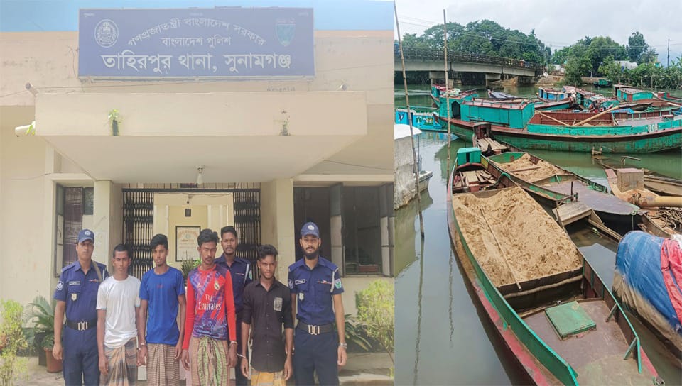 তাহিরপুর থানা পুলিশের অভিযানে বালু ভর্তি ৬টি নৌকাসহ গ্রেফতার-৪