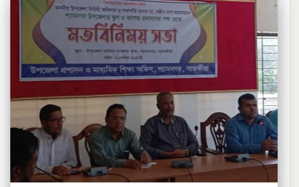(২ সেপ্টেম্বর) সকাল ১০টায় শ্যামনগর উপজেলা প্রশাসন ও উপজেলা মাধ্যমিক শিক্ষা অফিসের আয়োজনে উপজেলা পরিষদ হলরুমে স্কুল, কলেজ শিক্ষা প্রতিষ্ঠানের প্রধানদের সাথে উপজেলা নির্বাহী অফিসার ডা. সঞ্জীব দাশের এক মতবিনিময় সভা অনুষ্ঠিত হয়।