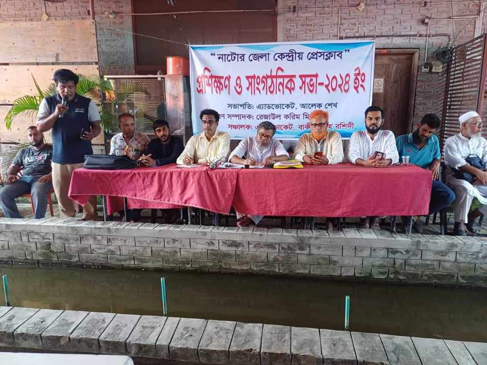 শনিবার(৭ সেপ্টেম্বর-২৪) দিনব্যাপী নাটোর শহরের চা-ট্টা রেস্টুরেন্ট লবিতে এই অনুষ্ঠান অনুষ্ঠিত হয়।উক্ত অনুষ্ঠানে প্রশিক্ষণ পর্বে সভাপতিত্ব করেন উক্ত প্রেসক্লাবের সভাপতি ও দৈনিক বারবেলা পত্রিকার প্রকাশক-সম্পাদক এ্যাডভোকেট আলেখ উদ্দিন শেখ।প্রশিক্ষণ পরিচালনা করেন উক্ত প্রেসক্লাবের সহ-সভাপতি ও আন্তর্জাতিক উন্নয়ন সংস্থার প্রশিক্ষন কনসালটেন্ট অমর ডি কস্তা।নাটোর জেলা কেন্দ্রীয় প্রেসক্লাবের সদস্যদের আরও দক্ষতা অর্জনের জন্য দিক নির্দেশনা বক্তব্য দেন বাংলাদেশের খবর পত্রিকার সাংবাদিক আবু হেনা মোস্তফা কামাল সুমন, ভোরের কাগজের সাংবাদিক ও কলামিস্ট আবু সাঈদ।