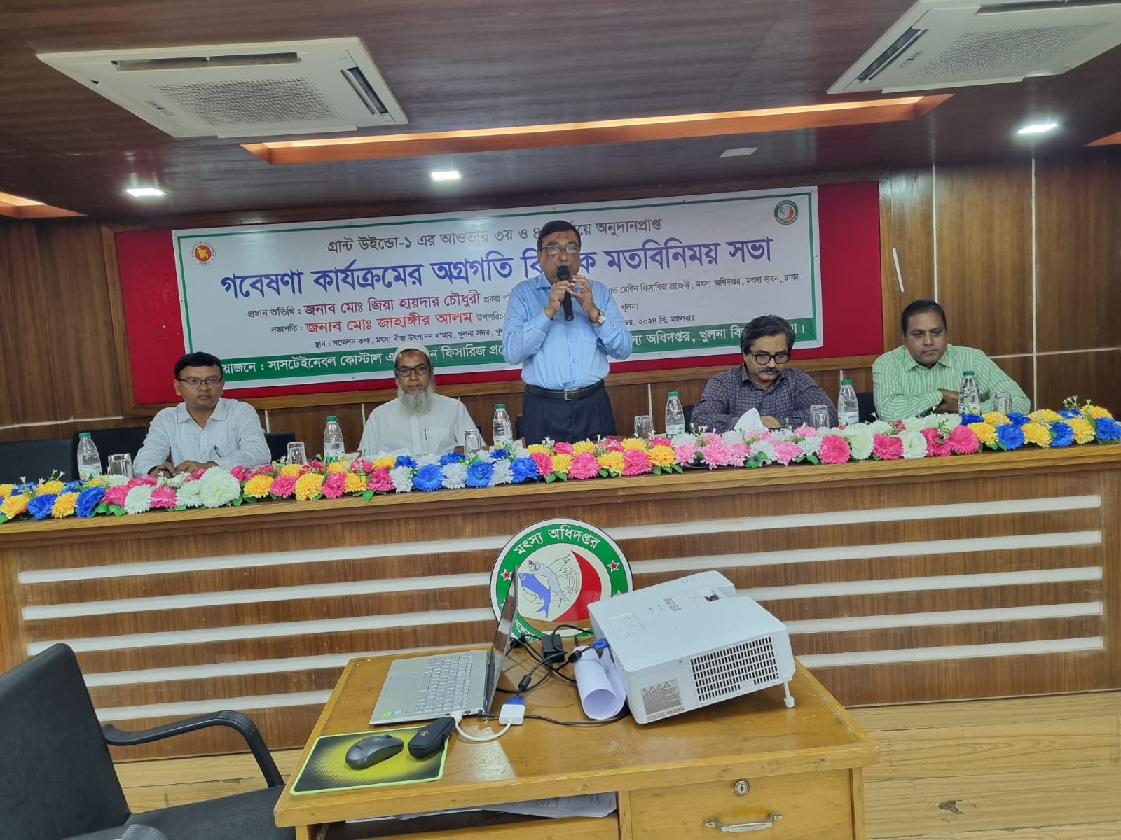 খুলনা গল্লামারী মৎস্য সম্মেলন কক্ষে গ্রান্ট উইন্ডো-১এর আওতায় ৩য় ও ৪র্থ পর্যায়ে অনুদানপ্রাপ্ত গবেষণা কার্যক্রমের অগ্রগতি বিষয়ক মতবিনিময় সভা অনুষ্ঠিত হয়।