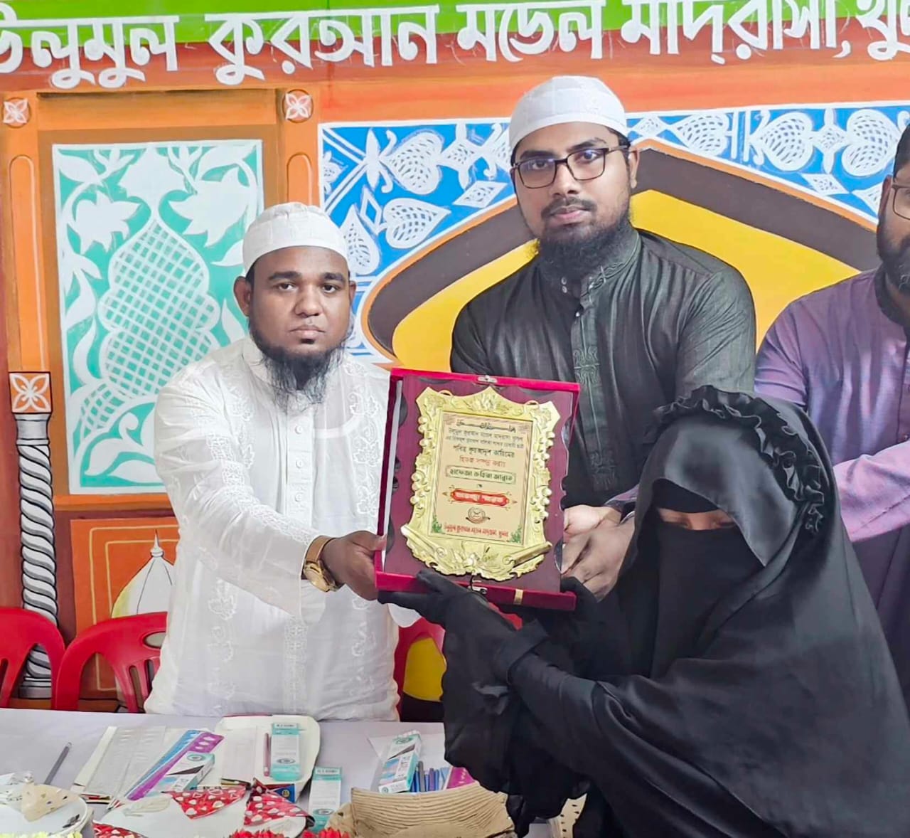 খুলনায় উলুমুল কুরআন মডেল মাদ্রাসা এর হিফজুল কুরআন বালিকা শাখার ছাত্রী রুহিয়া জান্নাত মাত্র দুই বছরে পবিত্র কুরআনুল কারিমের হিফজ সম্পন্ন করায় মাদ্রাসার পক্ষ থেকে সংবর্ধনা প্রদান করা হয়।