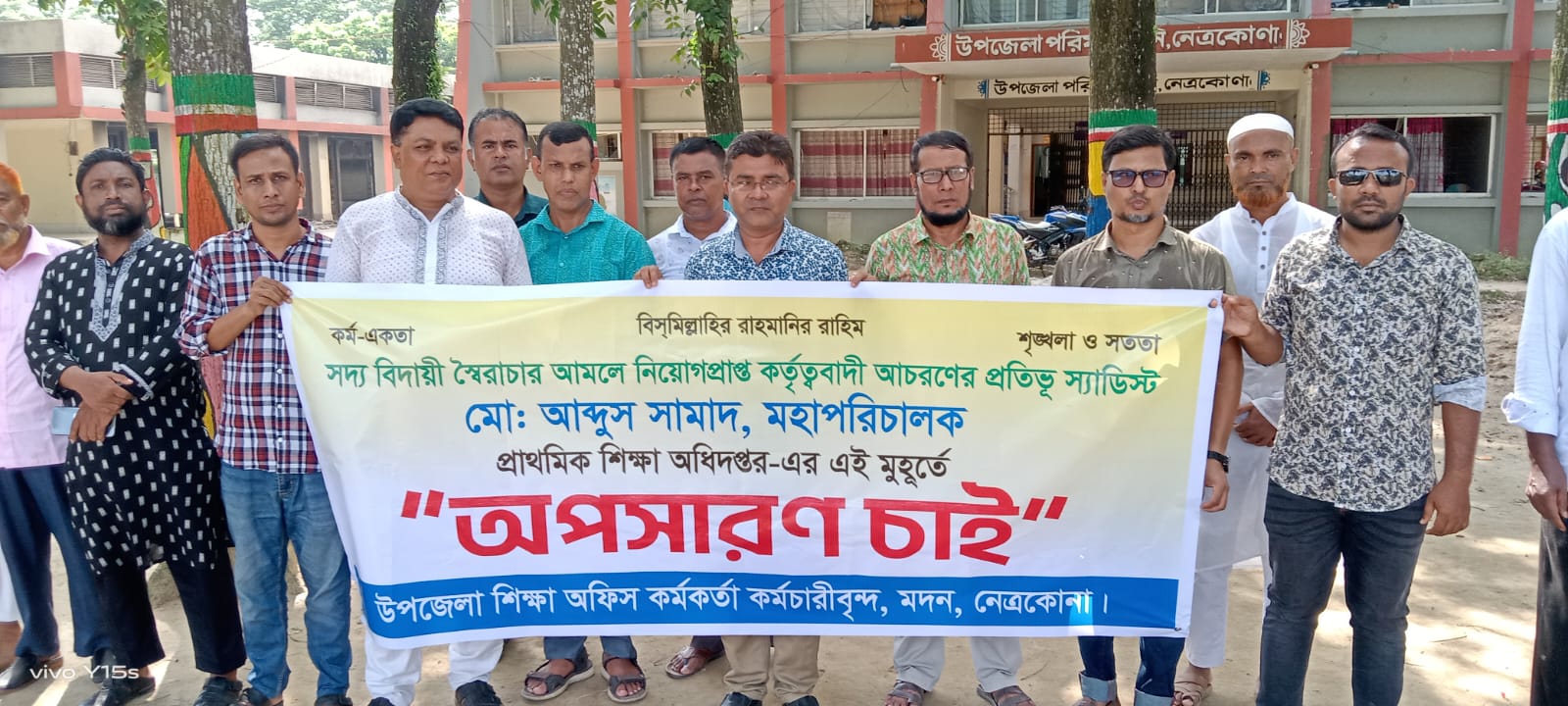 মদনে প্রাথমিক অধিদপ্তরের মহা- পরিচালক আব্দুস সামাদের অপসারণের দাবীতে মানববন্ধন কর্মসূচি অনুষ্ঠিত হয় হয়েছে।