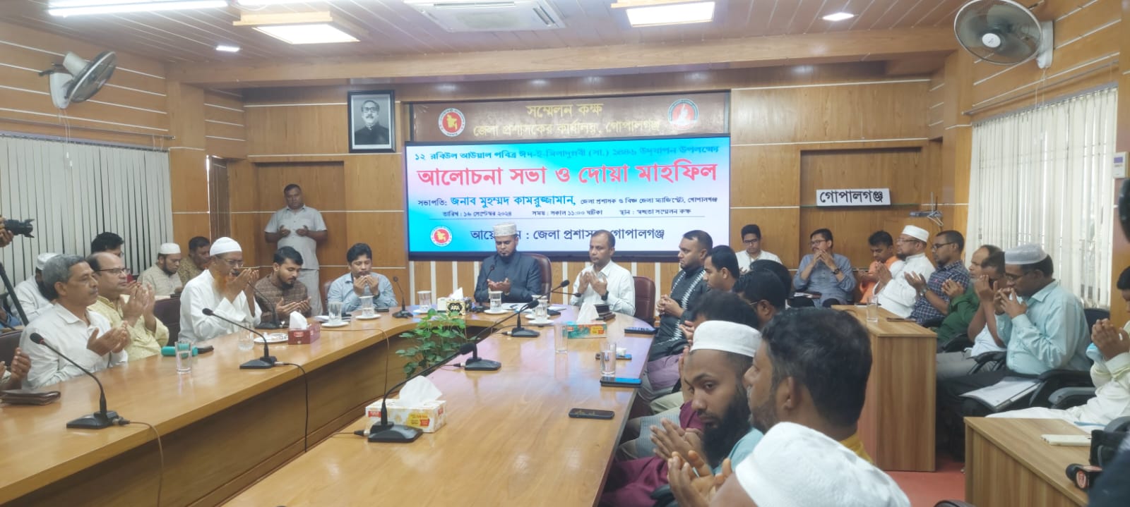 ১২ রবিউল আউয়াল পবিত্র ঈদ-ই- মিলাদুন্নবী (সাঃ) ১৪৪৬ উদযাপন উপলক্ষে গোপালগঞ্জ জেলা প্রশাসনের উদ্যোগে আলোচনাসভা ও দোয়া মাহফিল অনুষ্ঠিত হয়েছে।