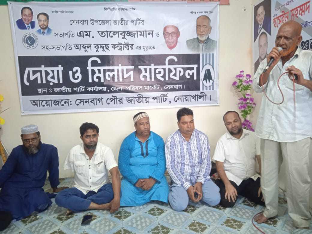 সেনবাগ উপজেলা জাতীয় পার্টির সাবেক সভাপতি তালেবুজ্জামান ও উপজেলা জাতীয় পার্টির সিনিয়র সহ সভাপতি আবদুল কুদ্দুসের মৃত্যু সেনবাগ পৌর জাতীয় পার্টির উদ্যোগে শোকসভা, দোয়া ও মিলাদ মাহফিল অনুষ্ঠিত হয়।