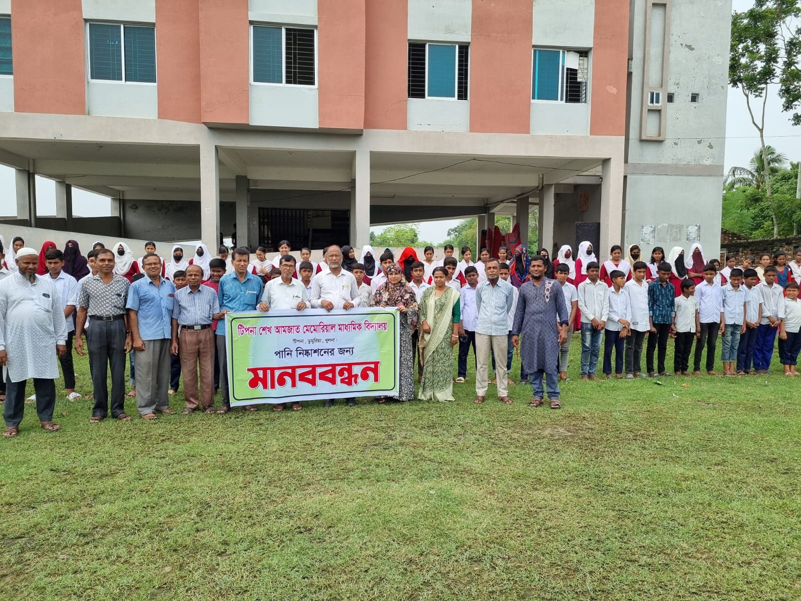 সোমবার ২৩সেপ্টেম্বার সকাল ১১টায় ডুমুরিয়া টিপনা শেখ আমজাদ মেমোরিয়াল মাধ্যমিক বিদ্যালয় মাঠে পানি নিষ্কাশনের জন্য মানববন্ধন অনুষ্ঠিত হয়।