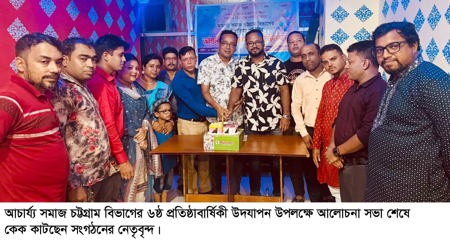 আচার্য্য সমাজ চট্টগ্রাম বিভাগের সম্মানিত সভাপতি শ্রী দীপংকর আচার্য্যের সভাপতিত্বে এবং যুগ্ম সাধারণ সম্পাদক এড. অভিজিৎ আচার্য্যের সঞ্চালনায় এক আলোচনা সভা নগরীর পুলিশ প্লাজা রেস্টুরেন্টে অনুষ্ঠিত হয়।