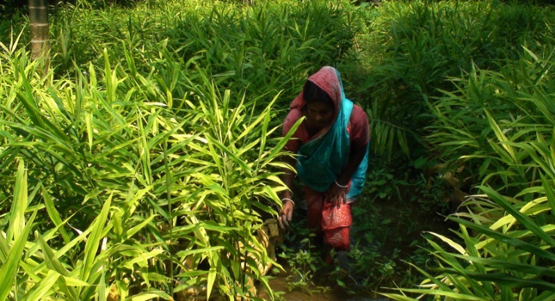 কৃষানী-মল্লিকা রায় জানান, সিমেন্টের ফেলে দেয়া বস্তায় সার মাটি দিয়ে ৫০ গ্রাম করে আদা রোপন করা হয়েছে। সারা বছর এই জমিতে পানি থাকে এখানে অন্য কোন ফসল হয়না। তাই কৃষি বিভাগের পরামর্শে আদা চাষ করেছি আশা করি ভালো ফলন পাবো। সাড়ে ৩ একর জমিতে ৭ লাখ টাকা খরচ হয়েছে। ১০ থেকে ১২ লাখ টাকা লাভ হবে এমনটি আশা করছি।