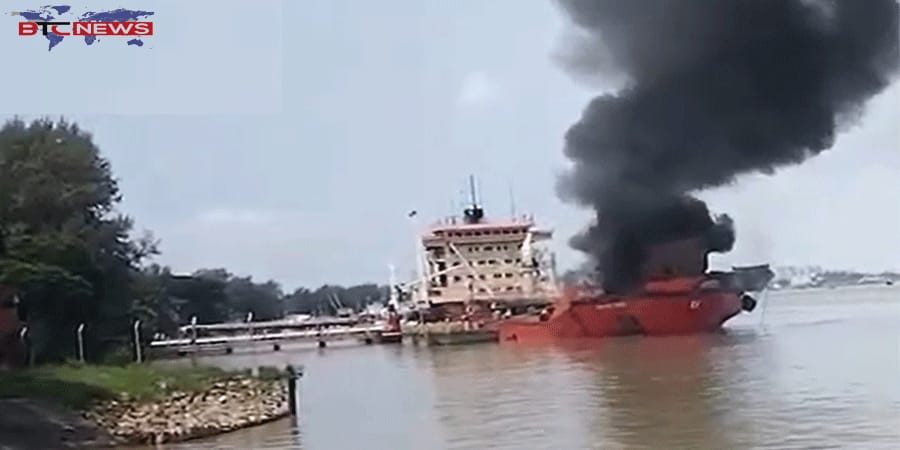 চট্টগ্রাম বন্দরের ডলফিন জেটিতে নোঙর করা একটি তেলের জাহাজে বিস্ফোরণের পর আগুন লেগেছে।