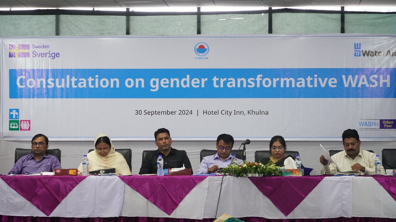 ৩০ সেপ্টেম্বর, ২০২৪ হোটেল সিটি ইন এ নবলোক ও ওয়াটার এইড এর যৌথ উদ্যোগে Consultation on Gender transformative WASH শীর্ষক একটি আলোচনা সভার আয়োজন করা হয়। উক্ত কর্মসূচিতে সভাপতিত্ব করেন কাজী রাজিব ইকবাল, নির্বাহী পরিচালক, নবলোক পরিষদ । কর্মশালার প্রধান অতিথি ছিলেন জনাব মোঃ ইউসুফ আলী, উপপরিচালক, স্থানীয় সরকার, খুলনা। বিশেষ অতিথি হিসেবে উপস্থিত ছিলেন জনাব অনিন্দিতা রায়, পরিচালক, সমাজসেবা অধিদপ্তর। অতিথি হিসেবে আরো উপস্থিত ছিলেন হাসনাহেনা, উপপরিচালক, মহিলা বিষয়ক অধিদপ্তর, কানিজ মোস্তফা, উপ-পরিচালক, সমাজসেবা অধিদপ্তর, মোহাম্মদ মোস্তাক উদ্দিন, উপ-পরিচালক ,যুব উন্নয়ন অধিদপ্তর, এছাড়া খুলনা সিটি কর্পোরেশন, ওয়াসা এবং খুলনা উন্নয়ন কর্তৃপক্ষের প্রতিনিধিবৃন্দ। এছাড়া আরো উপস্থিত ছিলেন বিভিন্ন এনজিও থেকে আগত সম্মানিত প্রতিনিধিবৃন্দ, গার্ল গাইড অ্যাসোসিয়েশন এর প্রতিনিধিবৃন্দ, বিভিন্ন শিক্ষা প্রতিষ্ঠান থেকে আগত ছাত্র ছাত্রী ও প্রধান শিক্ষক, সাংবাদিক মিডিয়া প্রতিনিধি, বিভিন্ন লিগ্যাল এইড সার্ভিসেস প্রতিষ্ঠানের প্রতিনিধিবৃন্দ ও ওয়াটার এইড এর পলিসি এবং এডভোকেসি লীড জনাব ফাইয়াজউদ্দিন আহমেদ এডভোকেট এবং জনাব বাবুল বালা প্রোগ্রাম লিভ ইউনিভার্সাল এক্সসেস এবং অনন্যা প্রতিনিধিবৃন্দ।
