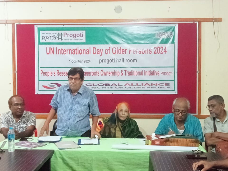 প্রগতির সম্পাদক সাবেক অধ্যক্ষ আশেক ই এলাহীর সঞ্চালনায় প্রবীন দিবসে বক্তব্য রাখেন মুক্তিযোদ্ধা মাষ্টার নজরুল ইসলাম, এ্যাড.জি এম মুনসুর রহমান, সহকারী অধ্যাপক দেবপ্রসাদ মন্ডল, শিক্ষক রনজিৎ কুমার বর্মন, প্রগতির সদস্য আব্দুল্লাহ আল বাকী, আঃ হান্নান, রফিকুল ইসলাম প্রমুখ।