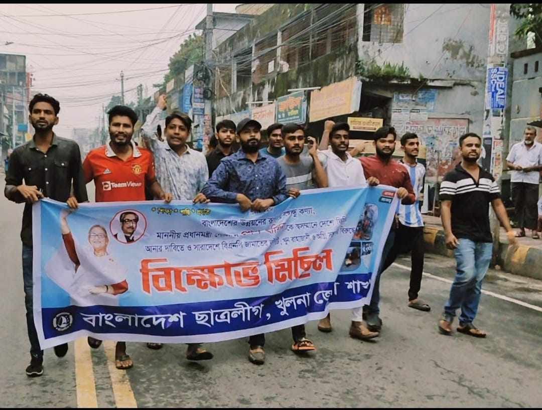 সাবেক প্রধানমন্ত্রী শেখ হাসিনা কে দেশে ফিরে এনে এবং চলমান নৈরাজ্য বিরুদ্ধে খুলনা জেলা ছাত্রলীগ নেতা সাইফুল ইসলাম সাইফের নেতৃত্বে খুলনা ডাকবাংলা থেকে শুরু শহীদ হাদিস পার্ক ও শঙ্খ মার্কেট সংলগ্ন অফিসে গিয়ে শেষ হয় এ সময় তারা সড়কে ব্যানার নিয়ে মিছিল করে এ ভিডিওটি তিনি তার নিজস্ব ফেসবুক পেজেও প্রচার চালান । বর্তমান চলমান পরিস্থিতিতে যেখানে বড় বড় পদধারী এমপি মেয়র ও নেতারা আত্বগোপনে সেখানে পরিচ্ছন্ন ছাত্রনেতা সাইফুল ইসলাম তার দলিয় কার্যক্রম চালিয়ে যাচ্ছেন।