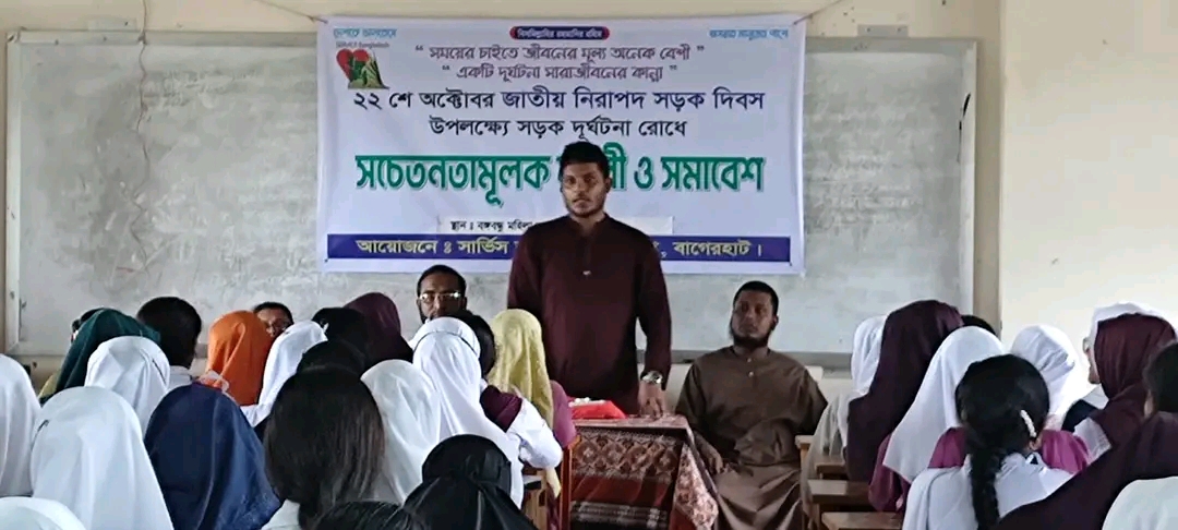 সার্ভিস বাংলাদেশ'র পক্ষ থেকে জাতীয় নিরাপদ সড়ক দিবস-২০২৪ উপলক্ষে মাসব্যাপী বিভিন্ন কর্মসূচীর অংশ হিসেবে আজ ০৩ রা অক্টোবর রোজ বৃহস্পতিবার, সকাল ১১.৩০ মিনিটে,বঙ্গবন্ধু সরকারি মহিলা কলেজ,মোংলায় সড়ক দূর্ঘটনা রোধে সচেতনতামূলক লিফলেট বিতরণ, আলোচনা সভা ও কুইজ বিতরণ কর্মসূচী অনুষ্ঠিত হয়।