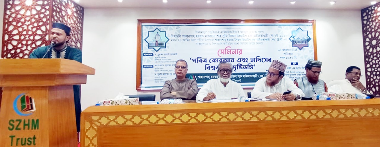 মাইজভাণ্ডারীয়া ত্বরিকার উজ্জ্বল নক্ষত্র বিশ্বঅলি শাহানশাহ্ হযরত মাওলানা শাহ্ সুফি সৈয়দ জিয়াউল হক মাইজভাণ্ডারী (ক.)-এর ৩৬তম ২৬ আশ্বিন উরস শরিফ উপলক্ষে ‘এস জেড এইচ এম ট্রাস্ট’-এর উদ্যোগে ৮দিন ব্যাপী কর্মসূচির অংশ হিসেবে ২য় দিবস আজ ৫ অক্টোবর চট্টগ্রাম নগরীর নতুন চান্দগাঁও থানা নিকটস্থ ‘এস জেড এইচ এম ট্রাস্ট মিলনায়তন’এ ‘পবিত্র কোরআন ও হাদিসের বিশ্বজনীন দৃষ্টিভঙ্গি’ শীর্ষক সেমিনার অনুষ্ঠিত হয়।