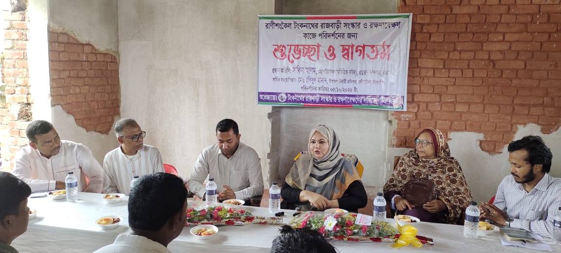 ঠাকুরগাঁও জেলার রাণীশংকৈল উপজেলার রাজা টংনাথের রাজবাড়ী, ও হরিপুর উপজেলার জগদল জমিদারী রাজবাড়ী পরির্দশন করেছেন (অতিরিক্ত সচিব) সাবিনা আলম। ৫ অক্টোবর শনিবার হরিপুর উপজেলার জগদল জমিদারী রাজবাড়ী ও রাণীশংকৈল উপজেলার রাজা টংকনাথের রাজবাড়ী পরির্দশন করেন। সেখানেই সংক্ষিপ্তভাবে একটি মতবিনিময় সভা অনুষ্ঠিত হয় । এতে রাণীশংকৈল উপজেলা নির্বাহী কর্মকর্তা রকিবুল হাসানের সভাপতিত্বে প্রত্নতত্ব অধিদপ্তরের মহাপরিচালক সাবিনা আলম প্রধান অতিথির বক্তব্যে বলেন, রাজবাড়ীগুলো ইতিহাস ঐতিহ্যের প্রতিক। এগুলো সংস্কার করা জরুরী। তিনি বলেন, ইতিমধ্যে রাজা টংকনাথের রাজবাড়ী সংস্কারের কাজ চলছে। পর্য়ায়ক্রমে তিনটি রাজবাড়ী সংস্কার করে এগুলোকে যাদুঘর হিসাবে রুপান্তর করা হবে। তিনি রাজবাড়ীগুলো সংরক্ষন ও রক্ষনাবেক্ষনের জন্য সকলকে এগিয়ে আসার আহবান জানান। পরিশেষে তিনি বলেন, রাজবাড়ীগুলো অব্যশই সংস্কার করে দ্রুত যাদুঘরে রুপান্তর করে সকলের জন্য উন্মুক্ত করা হবে। মতবিনিময় সভায় আরো বক্তব্য রাখেন-রাণীশংকৈল ডিগ্রী কলেজের সাবেক অধ্যক্ষ তাজুল ইসলাম,তাজহাট জমিদার বাড়ীর কাস্টোডিয়ান খায়রুল বাসার স্বপন,(রংপুর) কান্তস্বর প্রত্নতাত্বিক যাদুঘরের সহকারী কাস্টোডিয়ান শিহাব হোসেন (দিনাজপুর) প্রমূখ। সভায় উপস্থিত ছিলেন, মহাপরিচালকের বোন সাবেক প্রধান শিক্ষক উম্মেশ সালমা, উপজেলা যুবদলের যুগ্ন আহবায়ক সুমন আলী,বাচোর ইউনিয়ন যুবদলের সভাপতি আনসারুল ইসলাম,ছাত্রদল নেতা আরজু সহ স্থানীয় গণ্যমাণ্য ব্যক্তিবর্গ। উল্লেখ্য, এসব রাজবাড়ী দীর্ঘদিন ধরে অবহেলিত ভাবে জরাজীর্ণ অবস্থায় পড়েথাকায় সুপ্রিম কোর্টের আইনজীবি এ্যাডভোকেট মেহেদী হাসান শুভ হাইকোর্টে রিট করায় প্রত্নতাত্ত্বিক অধিদপ্তরের নজরে আসে। ফলে শুরু হয় সংস্কার কাজ।