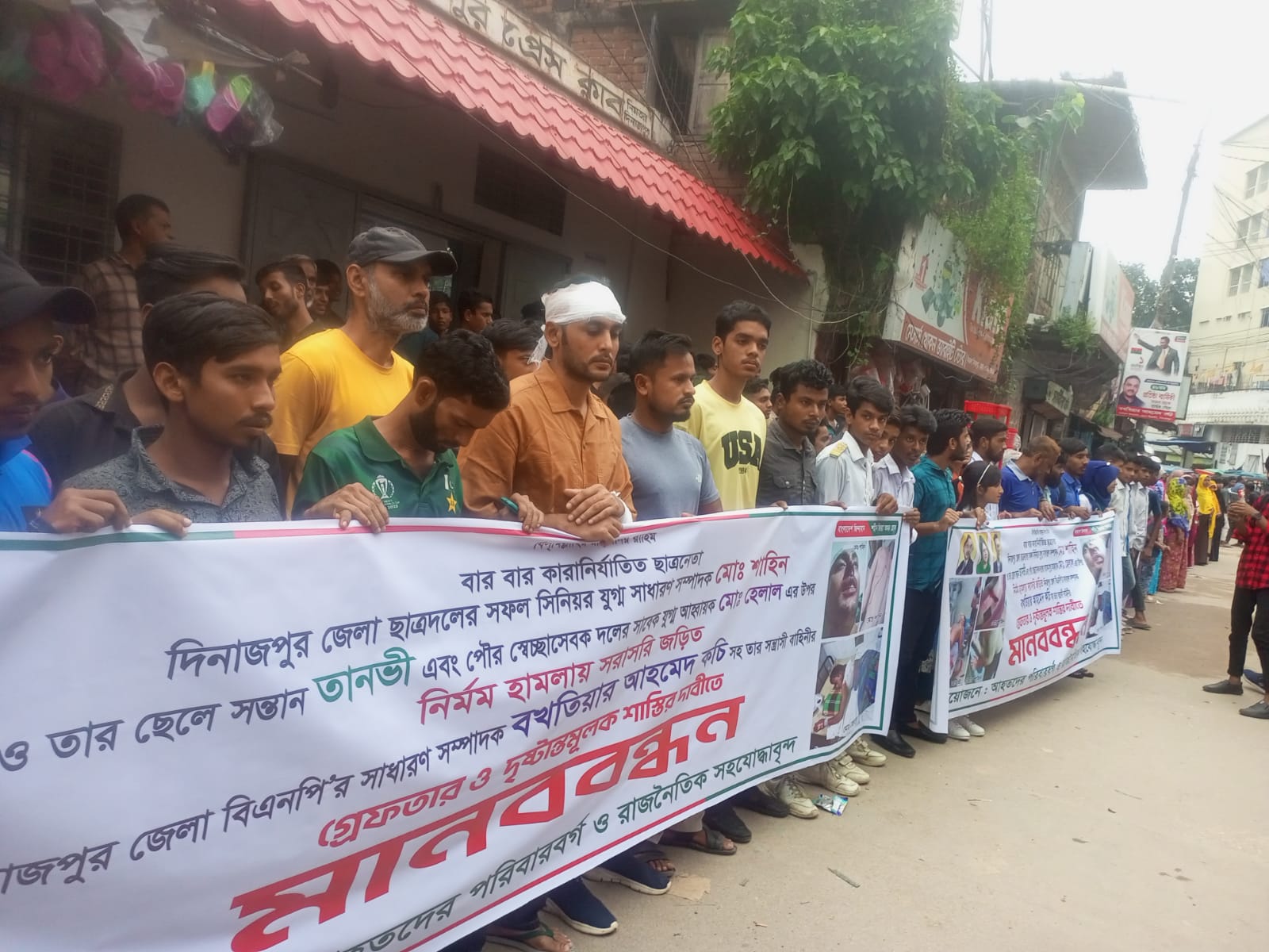 দিনাজপুর জেলা বিএনপির সাধারণ সম্পাদক বখতিয়ার আহমেদ কচি ও তার সন্ত্রাসী বাহিনীর হামলার প্রতিবাদে মানববন্ধন করেছে আহতদের পরিবার ও বিএনপির অঙ্গ সংগঠনের নেতৃবৃন্দ।