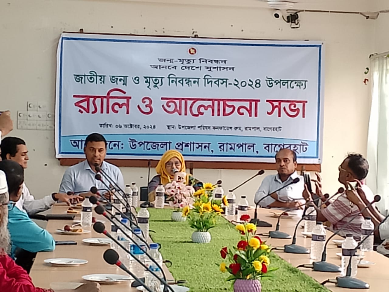 ৬ অক্টোবর সকাল ১১ টার সময় বাগেরহাটের রামপাল উপজেলার কনফারেন্স রুমে রামপাল উপজেলা প্রশাসনের আয়োজনে ও উপজেলা নির্বাহী অফিসার নুসরাত জাহান বুশরার সভাপতিত্বে জন্ম-মৃত্যু নিবন্ধন ,