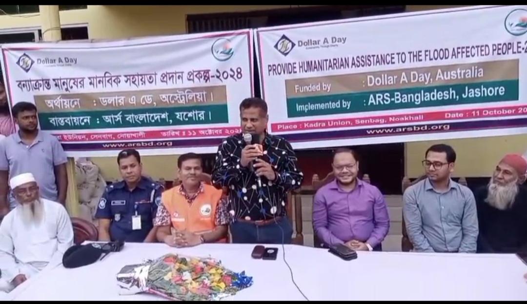 বৃহস্পতিবার (১০ অক্টোবর ) বিকেলে নোয়াখালীর সেনবাগ উপজেলার ৪নং কাদরা ইউনিয়নের জামালপুরস্হ বায়তুল মামুর জামে মসজিদ প্রাঙ্গণে ডলার এ ডে, অস্ট্রেলিয়ার অর্থায়নে ও আর্স বাংলাদেশ যশোর এর বাস্তবায়নে ৩টি টিউবওয়েল, ২টি সেলাই মেশিন, ৪টি ঘর মেরামত, ১টি ঘর নির্মাণ সহ বন্যাক্রান্ত মানুষের মাঝে মানবিক সহায়তায় ৩'শ প্যাকেট ত্রাণের উপহার সামগ্রী বিতরণ করা হয়।