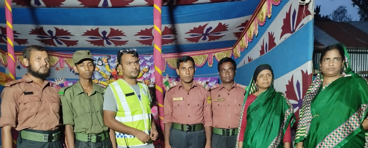 কোষাধ্যক্ষ শ্রী মানিক কুমার রাজ,। আলোচনা শেষে মোঃ মনিরুজ্জামান (মনির) মণ্ডপ পরিদর্শন করে কমিটির কাছে শুভেচ্ছা উপহার প্রদান করেন। এসময় উপস্থিত ছিলেন উপজেলা আনসার ভিডিপি সনাতনী ধর্মাবলম্বী গন্যমান্য ব্যক্তিবর্গ সহ প্রমূখ। পরে পূজা মণ্ডপ পরিদর্শন ও নেতৃবৃন্দের সাথে শুভেচ্ছা বিনিময় করেন। এদিকে এ বছর পূজা উদযাপনের নানান দিক দেখা শুনার পাশাপাশি সার্বিক সহযোগিতার জন্য কাজিপুর উপজেলা বিএনপি সভাপতি মোঃ সেলিম রেজা, বিএনপির নেত্বতেবৃন্দ এবং কাজিপুর উপজেলা নাটুয়ারপাড়া ইউনিয়ন বিএনপি ও নাটুয়ারপাড়া ইউনিয়ন জামায়াতে ইসলামী বাংলাদেশ নেত্বেবৃন্দ সনাতনধর্মের মানুষ পাশে থাকবে।