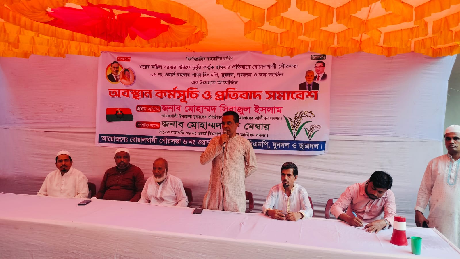 বোয়ালখালী পৌর সদরের খায়ের মঞ্জিল দরবার শরীফে হামলার প্রতিবাদে অবস্থান কর্মসূচি ও প্রতিবাদ সমাবেশ করেছেন পৌরসভার ৬ নম্বর ওয়ার্ড বিএনপির নেতাকর্মীরা।