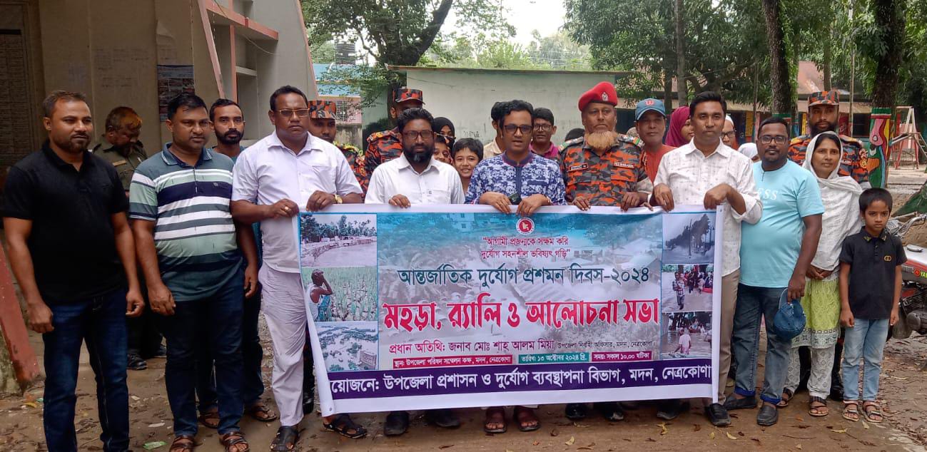 নেত্রকোণা প্রতিনিধিঃ " আগামী প্রজন্মকে সক্ষম করি দুর্যোগ সহনশীল ভবিষ্যৎ গড়ি' এই স্লোগান কে সামনে রেখে নেত্রকোণা মদন উপজেলা চত্বর হতে আন্তর্জাতিক দুর্যোগ প্রমোশন দিবস উপলক্ষে শোভাযাত্রা ও আলোচনা সভা অনুষ্ঠিত হয়েছে।