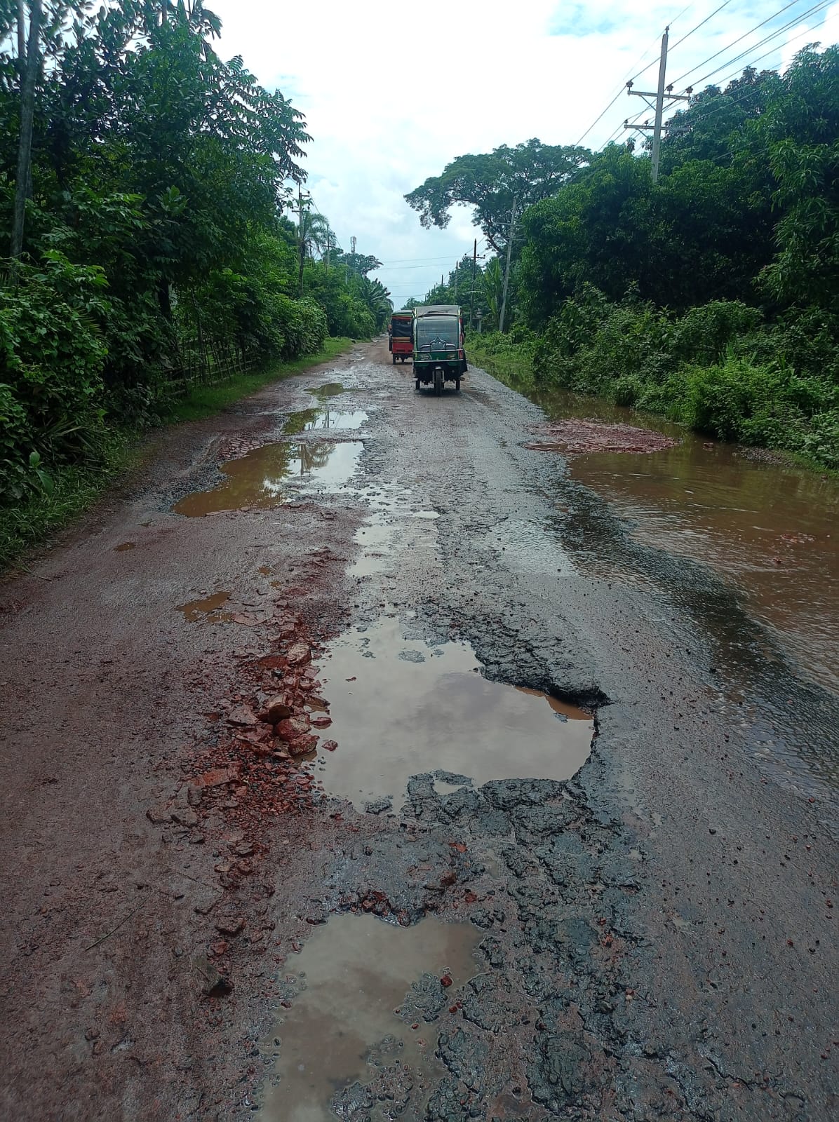 ছবির ক্যাপশন সাতক্ষীরা থেকে ভেটখালী গুরুত্বপূর্ণ সড়কের শ্যামনগর কালীগঞ্জের মধ্যে সড়কটির বেহাল দশার একাংশ।