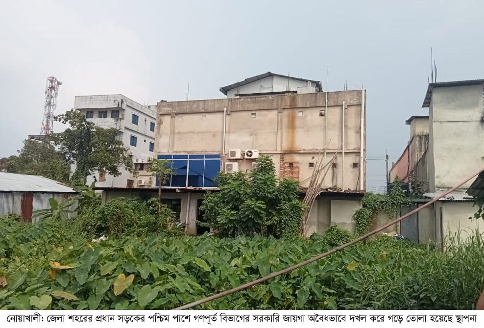 সরেজমিনে গেলে স্থানীয় বাসিন্দা আকরাম হোসেন, সাংবাদিক এমবি আলম, মাহবুবুর রহমান টিপুসহ একাধিক ব্যক্তি বলেন, ব্যবসায়ী সাহাব উদ্দিন খোকন। নোয়াখালী জেলা শহর মাইজদীর প্রধান সড়কের পশ্চিম পাশে গণপূর্ত বিভাগের কাছ থেকে ৬৫ ফুট সরকারি ভূমি চান্দিনা ভিটি হিসেবে বন্দোবস্ত নিয়ে গড়ে তোলেন বিশাল সেন্টার নামের একটি ব্যবসায়িক প্রতিষ্ঠান। ২০১৭ সালে নোয়াখালী চার লেন সড়ক বাস্তবায়নের জন্য তাঁর বন্দোবস্তকৃত ওই ৬৫ ফুট চান্দিনা ভিটি থেকে ২৪ ফুট ভূমি অধিগ্রহন করে নেয় সরকার। এজন্য ক্ষতিগ্রস্ত ব্যবসায়ী সাহাব উদ্দিন খোকনকে ৮৫ লাখ টাকা ক্ষতিপূরণ দেয়া হয়। কিন্তু সরকারের কাছ থেকে ক্ষতিপূরণ নিয়েও তাঁর বন্দোবস্তকৃত ৪১ ফুট জায়গার বাহিরে স্থানীয় রাজনৈতিক নেতাদের চত্রছায়ায় প্রতিষ্ঠানের পিছনের অংশের ৩০০ থেকে সাড়ে ৩০০ ফুট খালি সরকারি খাস জায়গা অবৈধভাবে দখল করে নোয়াখালী পৌরসভার বিল্ডিং কোড না মেনেই গড়ে তোলেন বহুতল ভবন। তাদের মতে, এই যেন এক রামরাজত্ব!