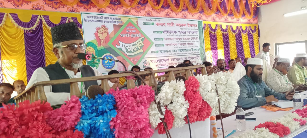 বাংলাদেশ জামায়াতের ইসলামী যুব বিভাগের কালিগঞ্জ উপজেলা শাখার আয়োজনে যুব ইউনিয়ন টিম এরওয়ার্ড সভাপতি- সেক্রেটারীদের সম্মেলন অনুষ্ঠিত হয়েছে। শুক্রবার (১৮ অক্টোবর) সকাল ৯ টায় উপজেলা পরিষদ অডিটরিয়ামে অনুষ্ঠানে উপজেলা জমায়াতের সহকারী সেক্রেটারি মাওলানা আনোয়ারুল ইসলাম এর সভাপতিত্বে প্রধান অতিথির বক্তব্য রাখেন সাতক্ষীরা ৪ আসনের সাবেক সংসদ সদস্য আলহাজ্ব গাজী নজরুল ইসলাম। তিনি বক্তব্যে বলেন আগামীর রাষ্ট গঠনে যুব সমাজকে বেশি বেশি ভুমিকা রাখতে হবে। ইসলামী বিধান মতে চলে এহকাল ও পরকালের শান্তির পথ সুগম করতে চাই। বিগত ১৬ বছরে এদেশে আমরা দেখেছি একটি গোষ্ঠির যুবকেরা শুধু নেশাগ্রস্থ নয়, সমাজ তথা দেশের বিপথগামী ও উচ্ছৃঙ্খল হিসাবে পরিচিতি লাভ করেছিলো। আজ তাদের করুন পরিণতির কারণ তারাই। সুতরাং জামায়াতে ইসলামীর যুব বিভাগকে নতুন নতুন কর্মী গঠনের মাধ্যমে সুস্থ্য সমাজ নির্মানে কার্যকরী পদক্ষেপ নিতে হবে। আমাদের আদর্শ ও কর্মসূচি দেখে যেনো আরও যুবকরা অনুপ্রেরণা পেয়ে বৃহত্তর ইসলামী আন্দোলনের পতাকা তলে আসতে পারে। প্রত্যককে নিজ নিজ অবস্থান থেকে আদর্শবান হিসেবে গড়ে তুলতে হবে। উক্ত সম্মেলনে প্রধান বক্তার বক্তব্য রাখেন যুব বিভাগ জামায়াতের জেলা সহকারী সেক্রেটারি প্রভাষক ওমর ফারুক। বিশেষ অতিথির বক্তব্য রাখেন উপজেলা জামায়াতের আমির মাওঃ আব্দুল ওয়াহাব সিদ্দিকী। এসময়ে অন্যান্যদের মধ্যে বক্তব্য রাখেন জামায়াতে ইসলামীর উপজেলার ১২টি ইউনিয়নের যুব বিভাগের সভাপতি সেক্রেটারিসহ জামায়াত ও ছাত্র শিবিরের বিভিন্ন পর্যায়ের নেতৃবৃন্দ।