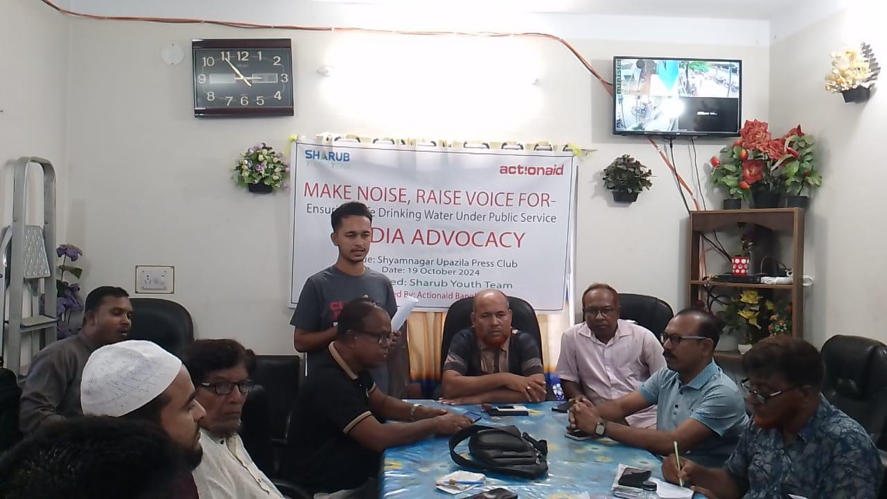 সুপেয় পানির তিব্র সংকট নিরসনে ও সরকারি সেবার আওতায় সুপেয় পানি নিশ্চিতকরনের জন্য শনিবার ১৯ অক্টোবর, দুপুর ১২:৩০ ঘটিকায় শ্যামনগর উপজেলা প্রেসক্লাব হলরুমে যুব সংগঠন শরুব ইয়ুথ টিমের আয়োজনে ও একশন এইড বাংলাদেশের সহযোগিতায় গণমাধ্যমকর্মীদের সাথে মিডিয়া এ্যাডভকেসি সভা অনুষ্ঠিত হয়েছে।
