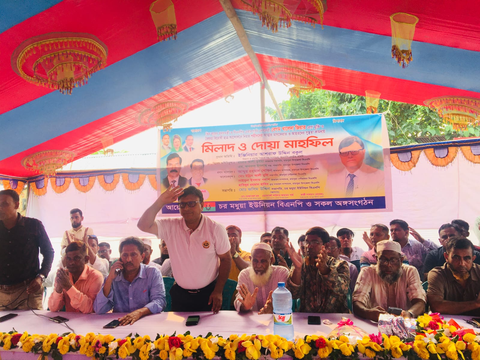 শনিবার (১৯ অক্টোবর) বিকালে উপজেলার চরমধুয়া ইউনিয়নের সমিবাদ বাজারে এ মিলাদ ও দোয়া মাহফিল অনুষ্ঠিত হয়।