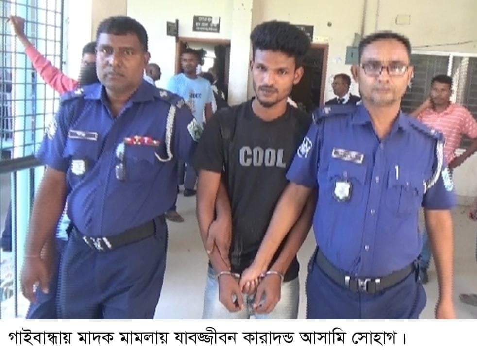 গাইবান্ধার মাদক মামলায় সোহাগ মিয়া নামে এক যুবককে যাবজ্জীবন কারাদণ্ড দিয়েছেন আদালত। এ ছাড়া ২০ হাজার টাকা জরিমানা ও অনাদায়ে এক বছরের কারাদণ্ড দেওয়া হয়েছে। মঙ্গলবার দুপুরে গাইবান্ধা জেলার অতিরিক্ত দায়রা জজ দ্বিতীয় আদালতের বিচারক মো. ফিরোজ কবির এ রায় দেন। কারাদণ্ডপ্রাপ্ত সোহাগ মিয়া গাইবান্ধা জেলার ২ নম্বর ওয়ার্ডের কাঠপট্টি এলাকার আশরাফুল ইসলামের ছেলে।