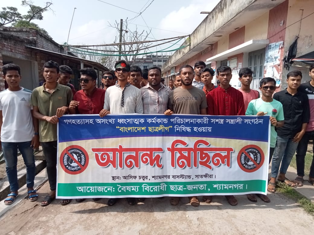 রবিবার ২৭ অক্টোবর শ্যামনগর বৈষম্য বিরোধী ছাত্র-জনতার আয়োজনে সরকারি মহাসিন ডিগ্রী কলেজ থেকে আনন্দ র্যালীটি সদরের প্রধান প্রধান সড়ক প্রদক্ষিণ করে আসিফ চত্বরে এসে শেষ হয়।