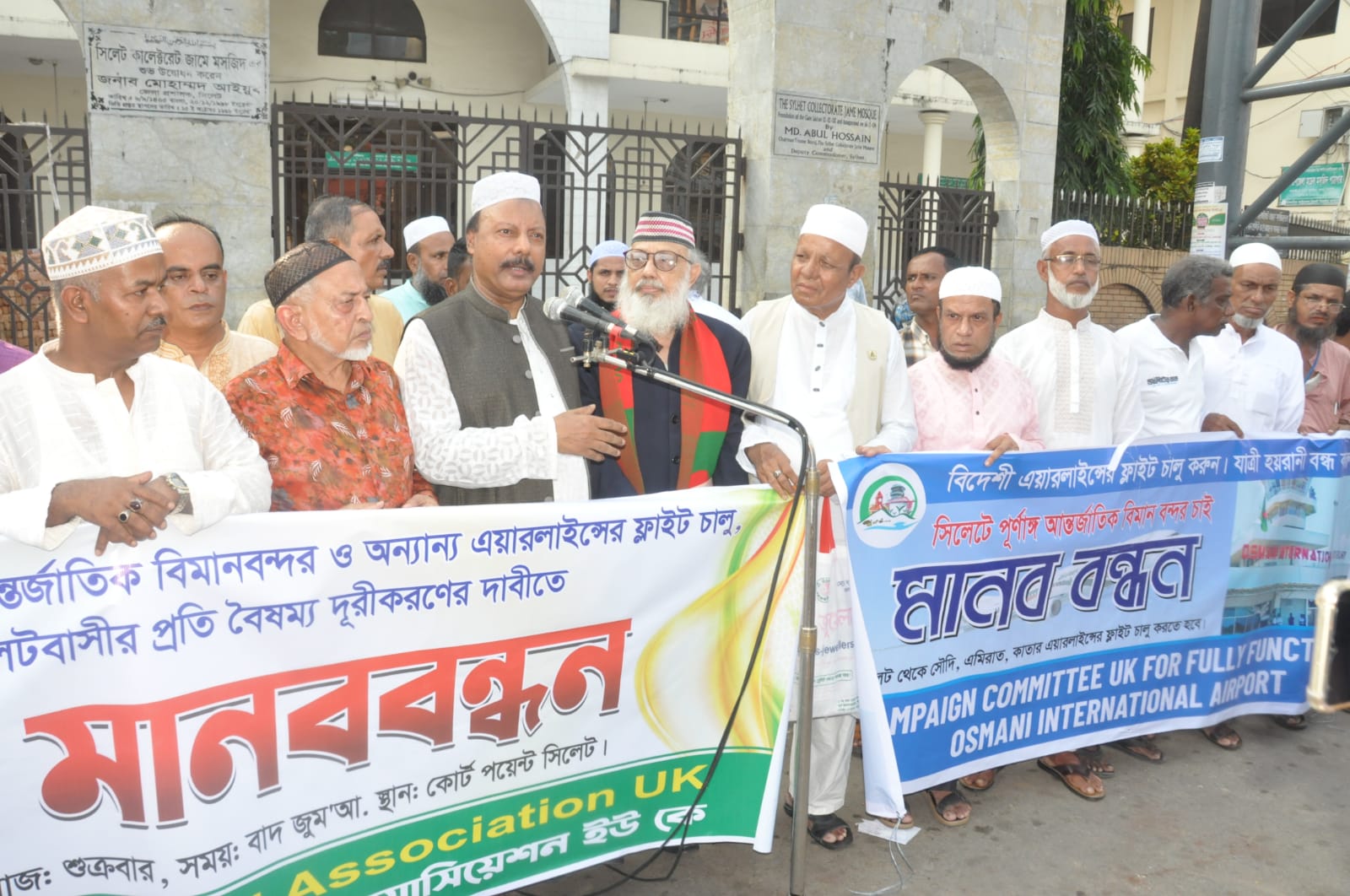 সিলেট ওসমানী আন্তর্জাতিক বিমানবন্দরকে পূর্ণাঙ্গ আন্তর্জাতিক বিমানবন্দরে পরিণত এবং অন্যান্য এয়ারলাইন্সের ফ্লাইট চালুসহ বিভিন্ন দাবি জানিয়ে ‘সিলটী আওয়াজ’ এবং ক্যাম্পেইন কমিটি ইউকে ফর ফুল্লি ফাঙ্কশনাল ওসমানী ইন্টারন্যাশনাল এয়ারপোর্ট যৌথভাবে এই মানববন্ধন কর্মসূচির আয়োজন করে।
