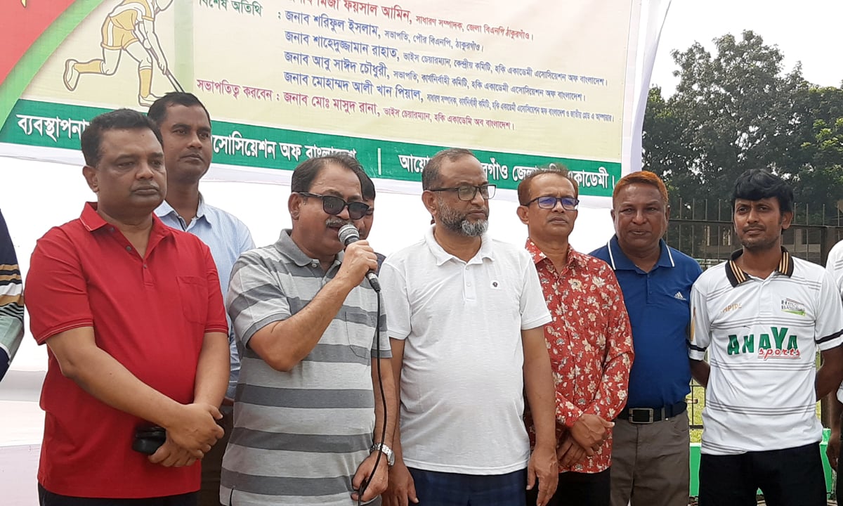 ঠাকুরগাঁওয়ে জমজমাটপুর্ণ আয়োজনের মধ্য দিয়ে “১ম ফাইভ সাইড নারী হকি একাডেমী কাপ-২০২৪” এর সমাপনী খেলা ও পুরস্কার বিতরণী অনুষ্ঠিত হয় । ২ নভেম্বর শনিবার শহীদ মোহাম্মদ আলী স্টেডিয়ামে ফাইনাল খেলা ও পুরস্কার বিতরণীর আয়োজন করা হয় । হকি একাডেমী এসোসিয়েশন অফ বাংলাদেশের ব্যবস্থাপনায় ও “ঠাকুরগাঁও জেলা হকি একাডেমী”র আয়োজনে সমাপন ও পুরস্কার বিতরণী অনুষ্ঠানে হকি একাডেমী অব বাংলাদেশের ভাইস চেয়ারম্যান মো: মাসুদ রানার সভাপতিত্বে বক্তব্য দেন প্রধান অতিথি ঠাকুরগাঁও জেলা বিএনপির সাধারণ সম্পাদক ও সাবেক পৌর মেয়র মির্জা ফয়সল আমীন, বিশেষ অতিথি পৌর বিএনপির সভাপতি মো: শরিফুল ইসলাম শরিফ, হকি একাডেমী এসোসিয়েশন অফ বাংলাদেশের কার্যনির্বাহী কমিটির ভাইস চেয়ারম্যান শাহেদুজ্জামান রাহাত, সভাপতি আবু সাঈদ চৌধুরী, সাধারণ সম্পাদক মোহাম্মদ আলী খান পিয়াল প্রমুখ ।