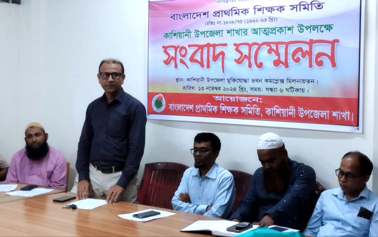 গোপালগঞ্জের কাশিয়ানী উপজেলায় 'বাংলাদেশ প্রাথমিক শিক্ষক সমিতি' নামে নতুন একটি শিক্ষক সংগঠন আত্মপ্রকাশ করেছে।গত বুধবার (১৩ নভেম্বর) বিকাল সাড়ে ৫ টায় উপজেলার মুক্তিযোদ্ধা কমপ্লেক্স ভবনের ২য় তলার কাশিয়ানী উপজেলা প্রেসক্লাবের কার্যালয়ে কাওছার আলী তালুকদারের সভাপতিত্বে অনুষ্ঠিত সম্মলিত প্রধান শিক্ষক ও সহকারী শিক্ষকদের সমন্বয়ে সভায় এর আত্মপ্রকাশ ঘটে।