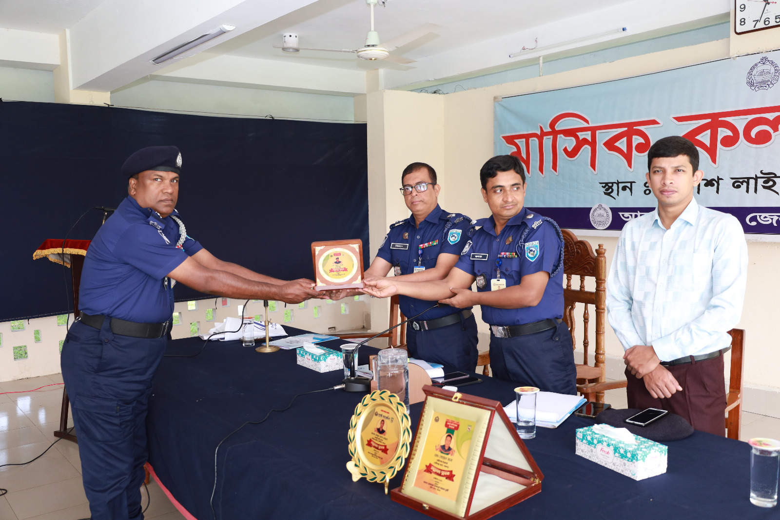 বোদা থানা এলাকায় মাদক, জঙ্গী, জুয়া, চুরি, ছিনতাই, যৌতুক, নারী নির্যাতন, বাল্যবিবাহ, সাইবার ক্রাইম, জায়গা জমি নিয়ে বিরোধ সহ প্রভৃতি অপরাধ নির্মুল করতে এস আই মোঃ মনজুরুল ইসলাম নিরলসভাবে কাজ করেছেন এরই স্বীকৃতি হিসেবে অদ্য ১৪/১১/২০২৪ খ্রিঃ সকাল ১১.০০ ঘটিকার সময় পঞ্চগড় পুলিশ লাইন্সে পঞ্চগড় জেলা পুলিশের মাসিক কল্যান ও অপরাধ পর্যালোচনা সভায় সার্বিক কর্ম মুল্যায়নে টানা ৪র্থ বারের মত নভেম্বর/২০২৪ শ্রেষ্ঠ অফিসার হিসেবে নির্বাচিত হয়েছেন মোঃ মনজুরুল ইসলাম। পঞ্চগড় জেলার মান্যবর পুলিশ সুপার জনাব মোঃ মিজানুর রহমান মুন্সী পুরস্কার প্রদান করেন। এসময় অতিরিক্ত পুলিশ সুপার পুলিশ সুপার (ক্রাইম এন্ড অপস) জনাব কনক কুমার দাস,সিনিয়র সহকারী পুলিশ সুপার(বি-সার্কেল) জনাব রুনা লায়লা সহ সকল থানা অফিসার ইনচার্জ ও অন্যান্য কর্মকর্তাগন উপস্থিত ছিলেন। বোদা থানার অফিসার্স ইনচার্জ মোঃ আজিম উদ্দিন গণমাধ্যম কর্মীদের জানান পরপর চারবার বোদা থানার এসআই মনজুরুল ইসলাম শ্রেষ্ঠ অফিসার হিসেবে ভূষিত হয়ায় আমরা গর্বিত।আমি তার সর্বাঙ্গিন মঙ্গল জীবন কামনা করি।