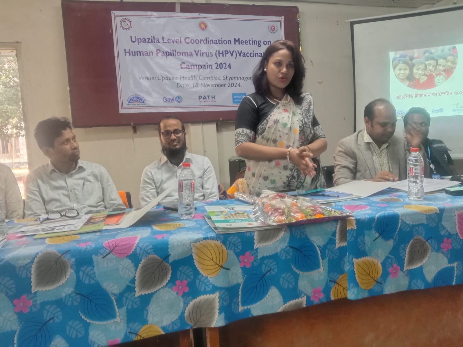 উপজেলা স্বাস্থ্য কর্মকর্তা ডাঃ জিয়াউর রহমানের সভপতিত্বে অনুষ্ঠিত উক্ত সভায় প্রধান অতিথির বক্তব্যে উপজেলা নির্বাহী কর্মকর্তা রনী খাতুন জানান আট/নয় হাজার টাকা মুল্যের উক্ত টিকা সরকারি উদ্যোগে সম্পুর্ন ফ্রি দেয়া হচ্ছে। ধর্মীয় কুসংস্কারের কারনে মুষ্টিমেয় মানুষ অতি গুরুত্বপুর্ন এ টিকা গ্রহনে অনীহা প্রকাশ করলেও অসংখ্য মাদ্রাসা ও বিদ্যালয়ে শতভাগ সাড়া মিলেছে। নিজের ও পরিবারের স্বার্থে ৯-১৪ বছর বয়সী কিশোরীদের নির্দিষ্ট সময়ের মধ্যে মরণঘাতি এ রোগের টিকা নেয়ার জন্য উব্দুব্ধ করতে তিনি সকলকে অনুরাধ করেন।