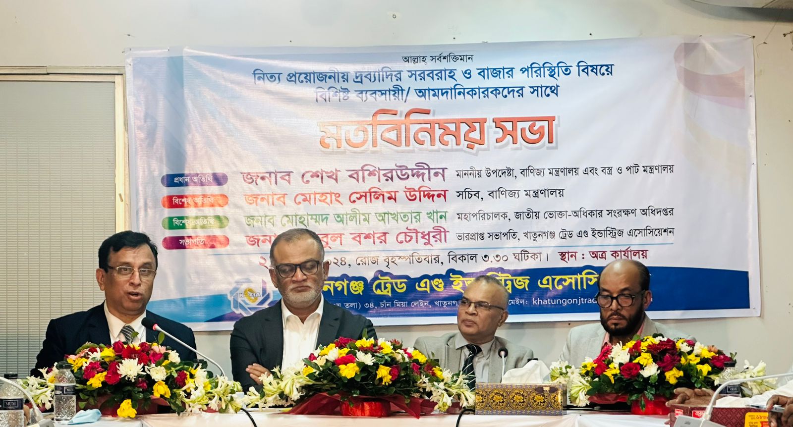 গতকাল ২১ নভেম্বর (বৃহস্পতিবার) সন্ধ্যায় খাতুনগঞ্জ ট্রেড এন্ড ইন্ডাস্ট্রিজ এসোসিয়েশন এর কার্যালয়ে নিত্য প্রয়োজনীয় দ্রব্যাদির সরবারহ ও বাজার পরিস্থিতি নিয়ে মতবিনিময় সভায় প্রধান অতিথির বক্তব্যে এসব কথা বলেন তিনি ।