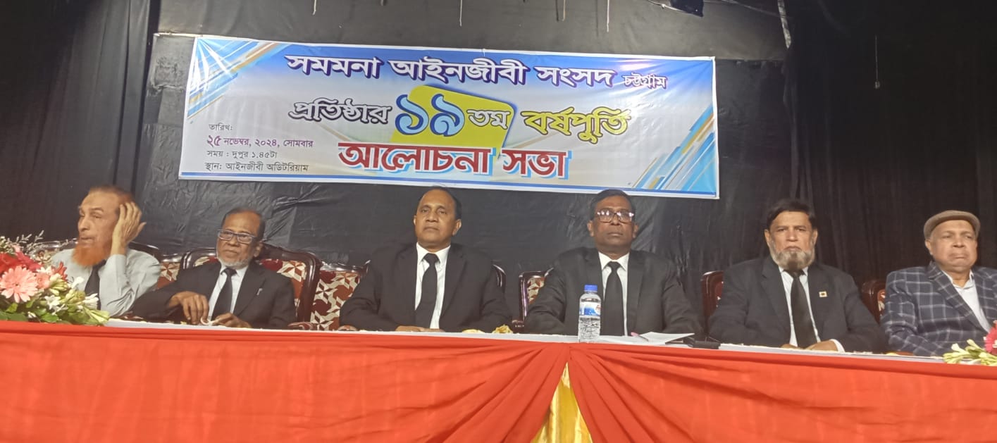চট্টগ্রাম নগরীর কোর্ট হিলে সমমনা আইনজীবী সংসদের ১৯তম প্রতিষ্ঠা বার্ষিকী উপলক্ষে আলোচনা সভা অনুষ্ঠিত হয়েছে।