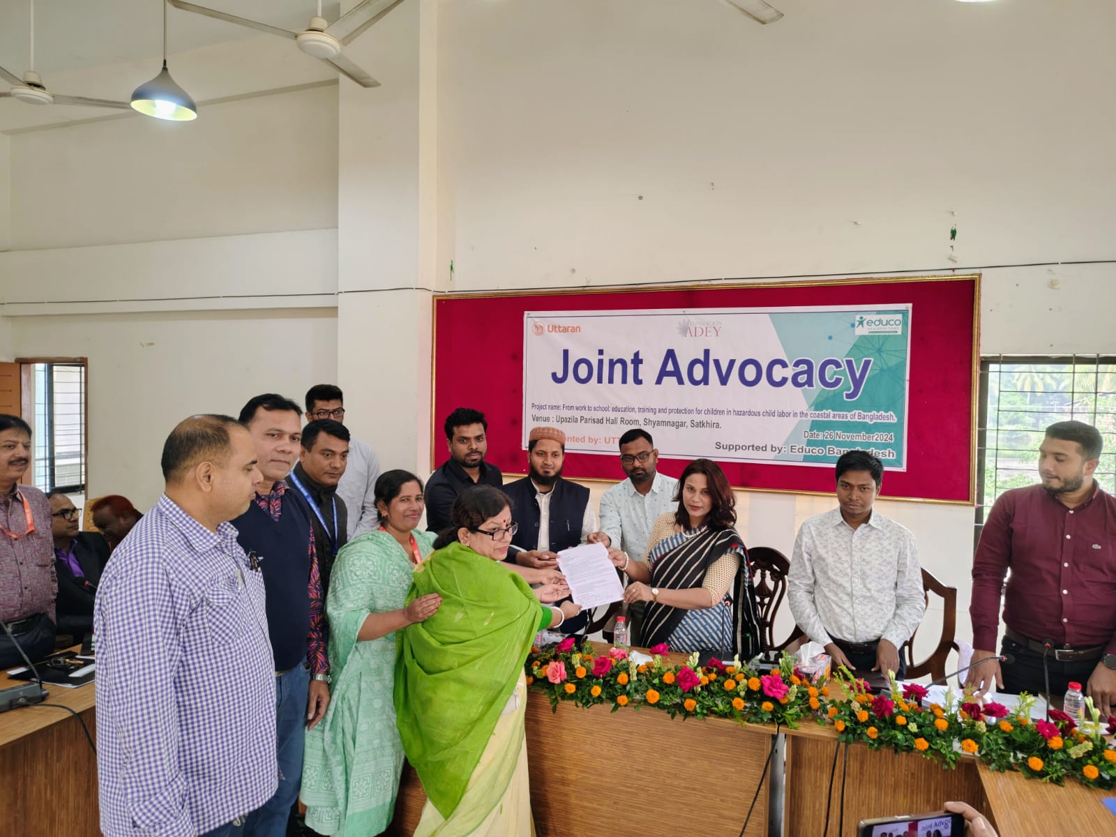 মঙ্গলবার ১১ টায় শ্যামনগর উপজেলা পরিষদ হলরুম উত্তরণের বাস্তবায়নে ও দাতা সংস্থা এডুকো’র আর্থিক সহায়তায় শিশুশ্রম নিরসন প্রকল্পের আওতায় শিশুশ্রম সংক্রান্ত আইন ও নীতিমালার যথাযথ বাস্তবায়ন এবং করনীয় বিষয়ক সভার আয়োজন করা হয়। উক্ত সভায় সভাপতিত্ব করেন উত্তরণের প্রকল্প সমন্বয়কারী মোঃ মনিরুজ্জামান জমাদ্দার। উত্তরণের প্রজেক্ট ম্যানেজার নাজমা আক্তারের সঞ্চালনায় সভায় প্রধান অতিথি হিসাবে উপস্থিত ছিলেন শ্যামনগর উপজেলা নির্বাহী অফিসার মোছাঃ রনী খাতুন। বিশেষ অতিথি হিসাবে উপস্থিত ছিলেন মোঃ শাহিনুর রহমান,সহকারী মহাপরিদর্শক,কলকারখানা ও প্রতিষ্ঠান পরিদর্শন অধিদপ্তর,খুলনা এবং মোঃ রিয়াজুল ইসলাম,শিশু বিষয়ক কর্মকর্তা,জেলা শিশু একাডেমী,সাতক্ষীরা। অতিথি হিসাবে উপস্থিত ছিলেন তুষার মজুমদার, সিনিয়র মৎস্য কর্মকর্তা, মোঃ হুমায়ুন কবীর, যুব উন্নয়ন কর্মকর্তা, শারিদ বিন শফিক মহিলা বিষয়ক কর্মকর্তা, আরিফুজ্জামান, সমাজসেবা কর্মকর্তা, মোঃ শাহিন হোসেন, উপজেলা শিক্ষা কর্মকর্তা, মোঃ মশিউর রহমান,সহকারী বন সংরক্ষন কর্মকর্তা, ডাঃ মোঃ ইব্রাহিম মোল্যা, স্বাস্থ্য কর্মকর্তাসহ উপজেলা পর্যায়ের অন্যান্য কর্মকর্তাবৃন্দ। আরও উপস্থিত ছিলেন শরিফুল্যাহ কায়সার সুমন,রিপোর্টার দেশ টিভি,আমেনা বিলকিস ময়না, রিপোর্টার,নিউজ ২৪, এ্যাডভোকেট, সভাপতি উপজেলা প্রাথমিক শিক্ষক সমিতি, ইউনিয়ন পরিষদ সদস্য,এনজিও প্রতিনিধি এবং উত্তরণ এর কর্মকর্তা জি এম মাসুদ রানা,অলোক কুমার পাল ও মোঃ আনিছুর রহমান সহ কাশিমাড়ী, বুড়িগোয়ালিনি, মুন্সিগঞ্জ ও গাবুরা ব্রিজ স্কুলের শিশু,অভিভাবক,শিশু সুরক্ষা কমিটির সদস্য,শিক্ষক ও কর্মমালিকগণ। উক্ত সভায় শিশুশ্রমের বিষয়ে বিভিন্ন সময়ে সরকারের নির্ধারিত আইন ও নীতিমালার বিষয়ে আলোচনা করা হয়।