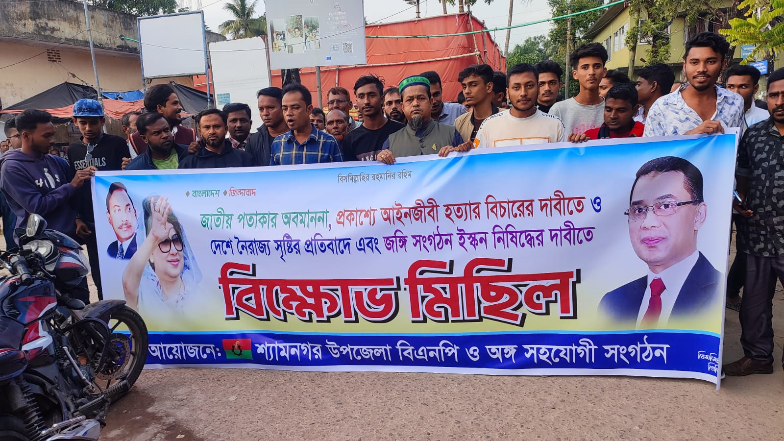 প্রকাশ্যে আইনজীবী হত্যা ও নৈরাজ্যের প্রতিবাদে শ্যামনগরে ছাত্রদলের বিক্ষোভ সমাবেশ অনুষ্ঠিত হয়েছে