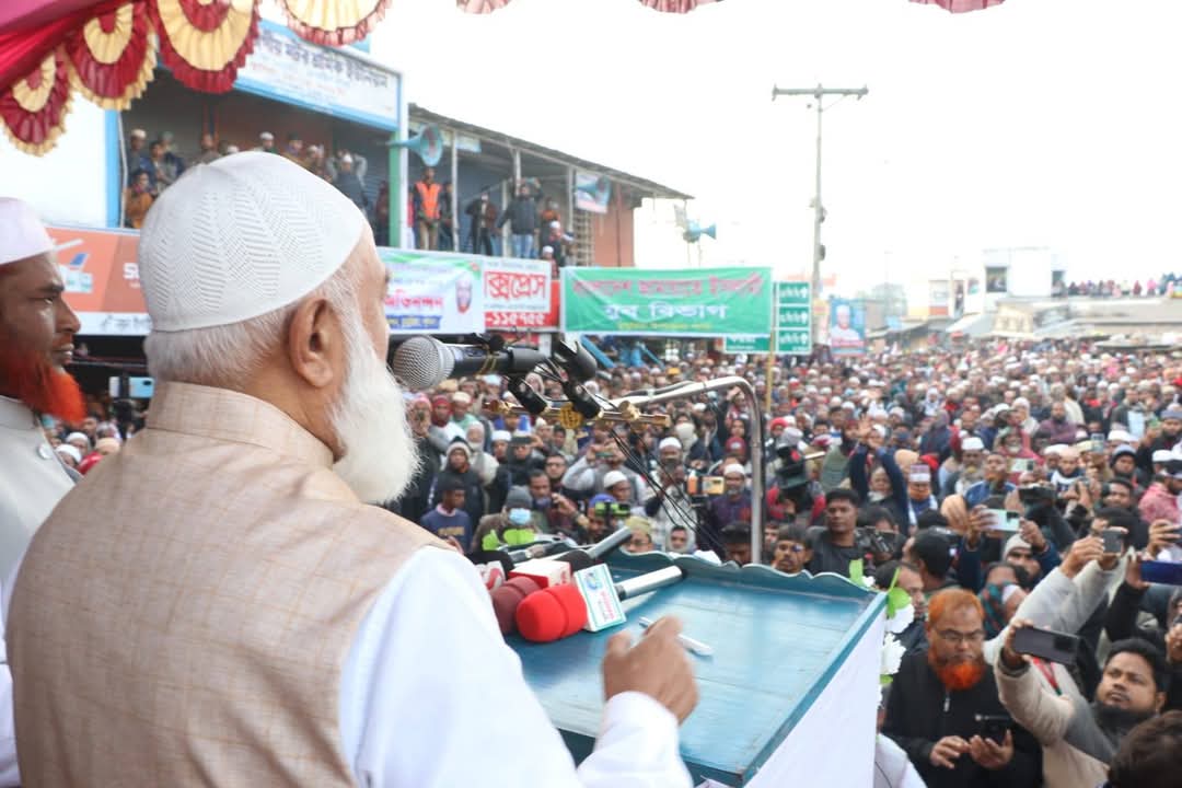 তিনি গত আওয়ামী লীগ সরকারের সমালোচনা করে বলেন, তারা বলেছিল বাংলাদেশ নাকি বিশ্বে উন্নয়নের রোল মডেল। আসলে উন্নয়নটা তাদের হয়েছে জনগণের না। গত সরকারের শাষনামলে খুন,গুম ও লটতরাজের সমালোচনা করে বলেন ভারতের কাছে তারা বাংলাদেশকে বন্ধক (ইজারা) দিয়েছিল। আসলে শেখ হাসিনা বাংলাদেশের প্রধানমন্ত্রী ছিলেননা, তিনি ছিলেন সেবাদাসী। ভারতের প্রতি স্পষ্ট বার্তা দিয়ে তিনি বলেন, প্রতিবেশী দেশ হিসেবে আমরা আপনাদের সম্মান করি, আপনারাও আমাদের সম্মান করতে শিখুন। ভারত থেকে চোখ রাঙাইয়া বাংলাদেশকে শাসনের চিন্তা বাদ দেওয়ার হুশিয়ারি দিয়ে তিনি বলেন, জুলাই আন্দোলনে শহীদ আবু সাঈদ বুক পেতে ডানা মেলে বলেছিল-বুকের ভিতর তুমুল ঝড়, বুক পেতেছি গুলি কর। তিনি বলেন, এজাতি বুক পেতে গুলি খেতে শিখেছে, বলে তিনি বলেন, এ জাতিকে ভয় দেখাবেননা। আমাদের ১০ কোটি যোদ্ধা রয়েছে।