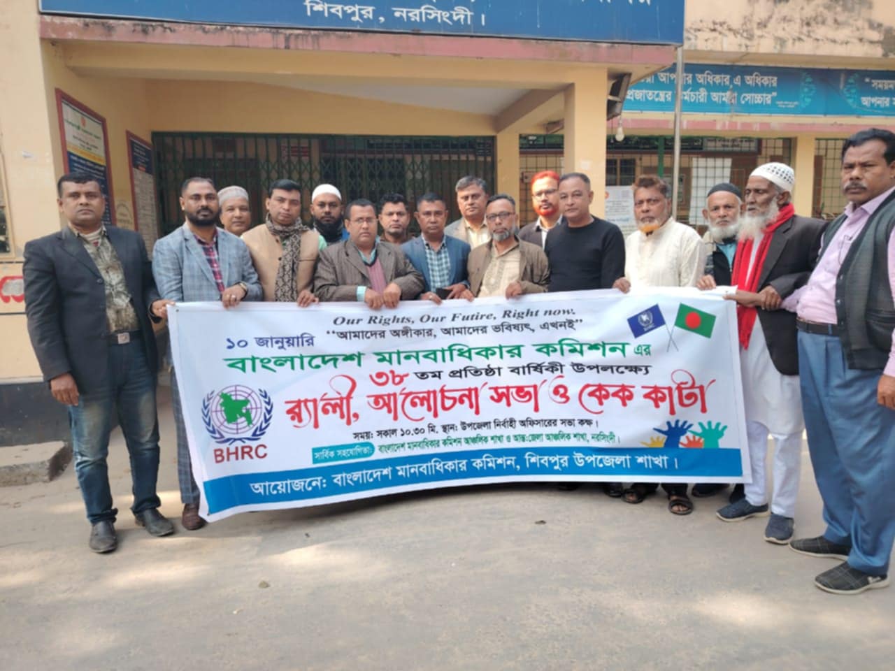 উপজেলা প্রশাসনের কার্যালয়ের সামনে বাংলাদেশ মানবাধিকার কমিশন এর ৩৮তম প্রতিষ্ঠা বার্ষিকী উৎযাপন উপলক্ষে, র্্যালী আলোচনা সভা এবং কেক কেটে পালিত হয়। উক্ত অনুষ্ঠানে , র্্যালী আলোচনা সভা এবং কেক কাটা অনুষ্ঠানের প্রধান অতিথি হিসেবে উপস্থিত ছিলেন, নরসিংদীর, শিবপুর উপজেলা নির্বাহী অফিসার মোছা: ফারজানা ইয়াসমিন,