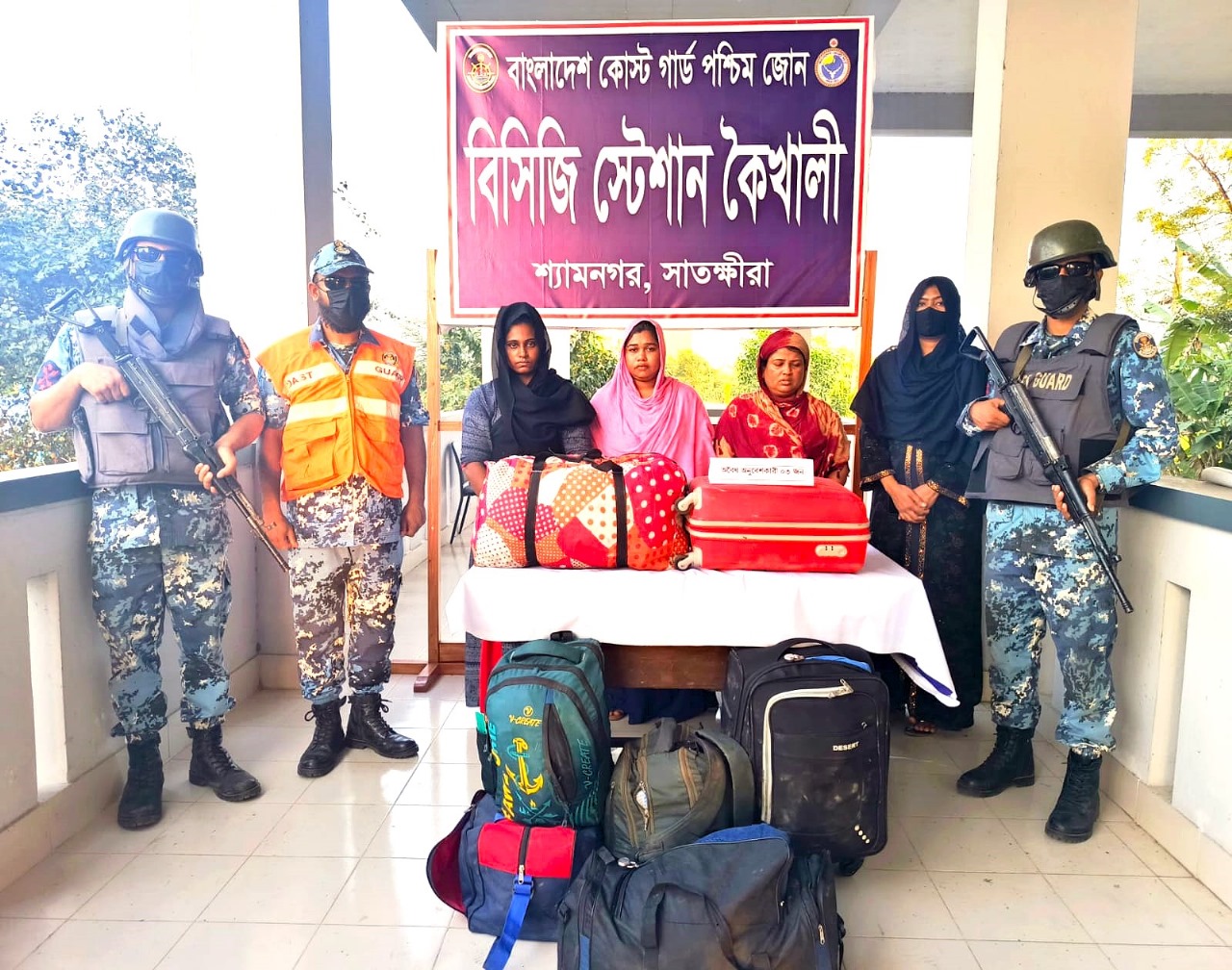 তিনি বলেন, গোপন সংবাদের ভিত্তিতে গত ১৪ মার্চ ২০২৫ তারিখ শুক্রবার বিকেল ৫ টায় বাংলাদেশ কোস্ট গার্ড পশ্চিম জোন অধীনস্থ বিসিজি স্টেশন কৈখালী ও পুলিশের সমন্বয়ে সাতক্ষীরার শ্যামনগর থানাধীন শৈলখালী এলাকায় একটি যৌথ অভিযান পরিচালনা করা হয়। অভিযান পরিচালনাকালে কচুখালী-হুগলডাঙ্গা সীমান্ত দিয়ে ভারত হতে অবৈধভাবে অনুপ্রবেশের সময় সন্দেহভাজন ৩ জন মহিলাকে আটক করা হয়। নারী পুলিশের সহায়তায় আটককৃত মহিলাদের ও তাদের সাথে থাকা ৭টি ব্যাগ তল্লাশি করে বিপুল পরিমাণ অবৈধ ভারতীয় কাপড় ও কসমেটিক্স জব্দ করা হয়।