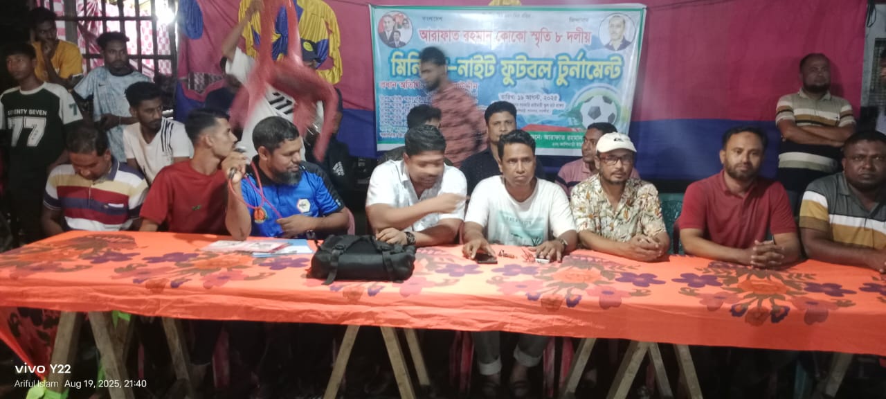 মঙ্গলবার রাত ৯টার দিকে অনুষ্ঠিত উক্ত খেলার উদ্বোধনীর ও সংক্ষিপ্ত আলোচনা সভাপতিত্ব করেন মোঃ সোহাগ হোসন। এ সময় অতিথি হিসাবে উপস্থিত ছিলেন উপজেলা বিএনপির সাবেক যুগ্ন আহবায়ক আব্দুর রশিদ ঢালী,উপজেলা রিপোর্টার্স ক্লাবের সভাপতি সিনিয়র সাংবাদিক এস কে সিরাজ, সাধারন সম্পাদক ও সাবেক কৃষকদলের সাধারন সম্পাদক ইয়াছিন আরাফাত, সেচ্ছাসেবকনেতা আব্দুস সালাম,সাতক্ষীরা ডে নাইট কলেজ ছাত্রদলের সভাপতি মোঃ মোর্তজা সহ অন্যান্য নেতৃবৃন্দ। এ সময় বিভিন্ন স্থান থেকে আসা শতশত দর্শকবৃন্দ উক্ত ফুটবল টুর্নামেন্ট উপভোগ করেন। এ সময় বক্তারা বলেন,যুব সমাজ বর্তমানে মাদক আর মোবাইল গেমে আসক্ত হয়ে পড়ছে, তাদের সকলের উদ্যোগে খেলাধুলা মুখি করতে হবে।তবে তারা বলেন,শ্যামনগর উপজেলা রিপোর্টার্স ক্লাবের নেতৃবৃন্দরা ইতিমধ্যে মাদকমুক্ত সমাজ গড়তে ব্যাপক তৎপরতার সাথে কাজ করে যাচ্ছে, বক্তারা সমাজের সকল শ্রেনীর মানুষ কে এগিয়ে আসার অনুরোধ করেন।